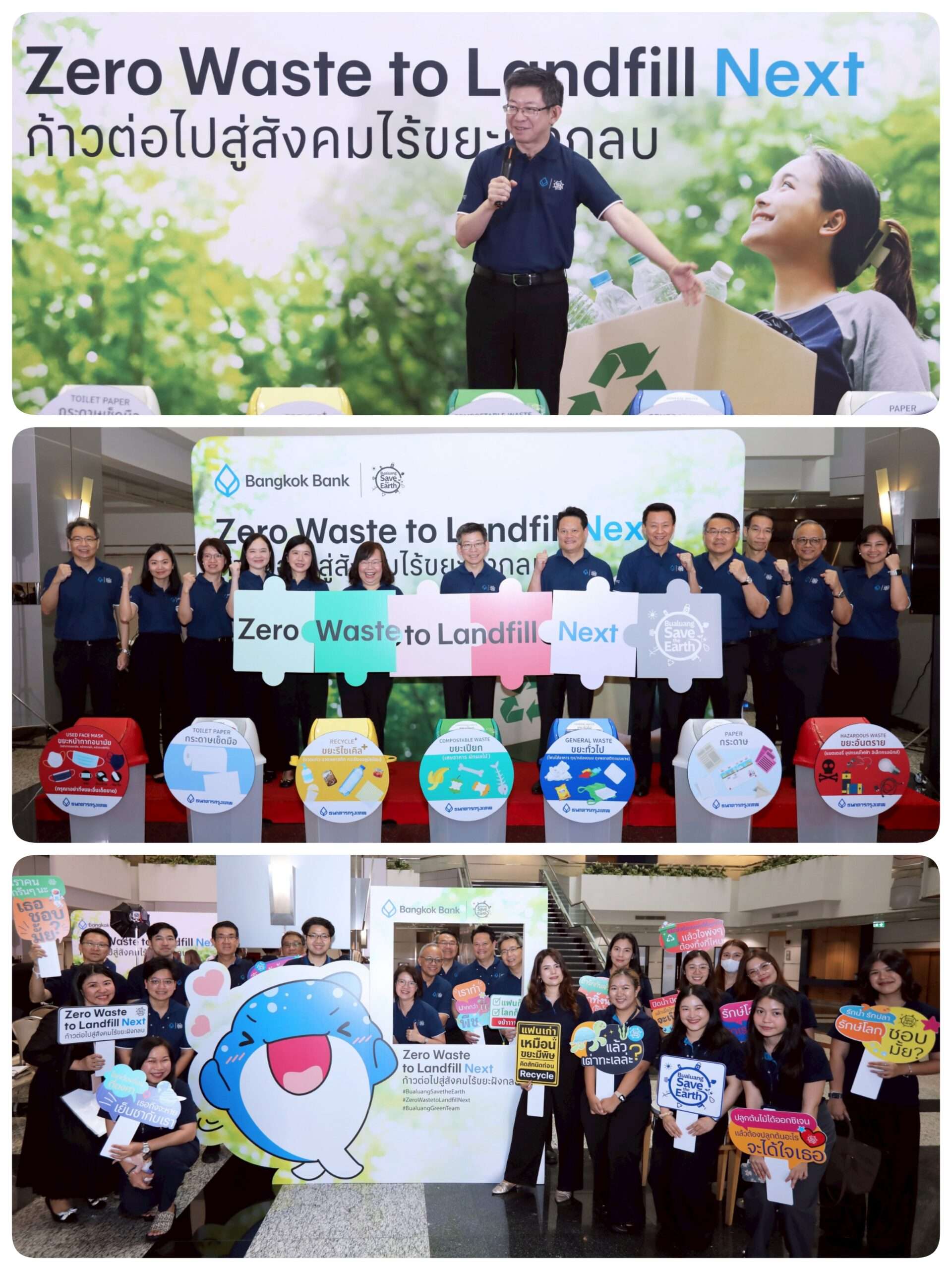 กิจกรรม Zero Waste to Landfill Next ก้าวต่อไปสู่สังคมไร้ขยะฝังกลบ เป็นส่วนหนึ่งของโครงการ Bualuang Save the Earth: 3R+ (Reduce, Reuse, Recycle Plus) ซึ่งธนาคารเริ่มนำร่องที่อาคารสำนักงานพระราม 3 ตั้งแต่ปี 2567 ครอบคลุมการบริหารจัดการขยะแบบครบวงจร อาทิ การอบรมเชิงปฏิบัติการด้านการคัดแยกขยะให้แก่ทีมแม่บ้านและพนักงานโดยผู้เชี่ยวชาญจากบริษัท อินโดรามา เวนเจอร์ส จำกัด (มหาชน) การใช้ภาชนะย่อยสลายได้ในโรงอาหาร การติดตั้งเครื่องกำจัดขยะเศษอาหารด้วยเทคโนโลยี Food Waste Processor เพื่อแปรรูปเป็นสารบำรุงดิน รวมถึงความร่วมมือกับบริษัท เบตเตอร์ เวิลด์ กรีน จำกัด ในโครงการ “ส่งขยะกลับบ้าน” รับบริจาคขยะกำพร้าหลากหลายชนิด เช่น เสื้อผ้าเก่าพลาสติก โฟม ซองขนม กล่องนม หลอด เพื่อนำไปแปรรูปเป็นเชื้อเพลิงพลังงานทดแทน RDF (Refuse Derived Fuel) สำหรับใช้ผลิตพลังงานไฟฟ้าหรือความร้อน แทนเชื้อเพลิงฟอสซิล หรือนำไปใช้ประโยชน์อื่นต่อไป