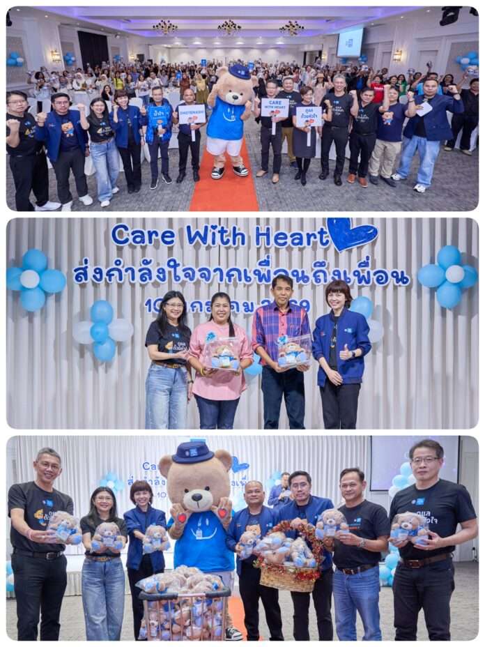 ไทยประกันชีวิตเชิญชวนพนักงานสำนักงานใหญ่ และสาขาทั่วประเทศ ร่วมส่งกำลังใจผ่านการมอบ “หมีไทยจิ” ซึ่งเป็นสัญลักษณ์ของการดูแลด้วยหัวใจ พร้อมเขียนการ์ดให้กำลังใจ “จากเพื่อนถึงเพื่อน” ให้แก่พนักงานและฝ่ายขายในพื้นที่ที่ได้รับผลกระทบ