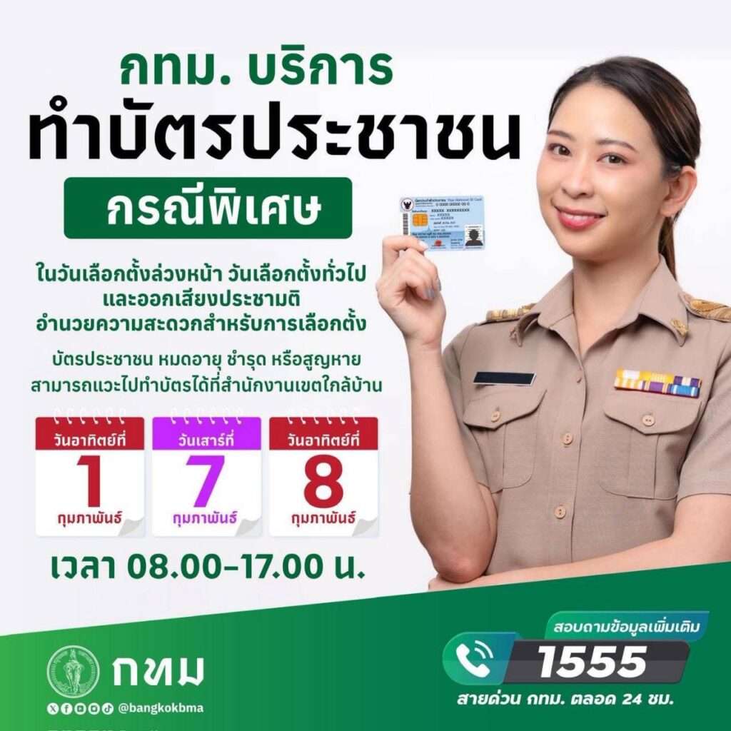 กทม. เปิดบริการ “ทำบัตรประชาชนกรณีพิเศษ” รองรับวันเลือกตั้ง–ประชามติ อำนวยความสะดวกประชาชนบัตรหาย–หมดอายุ