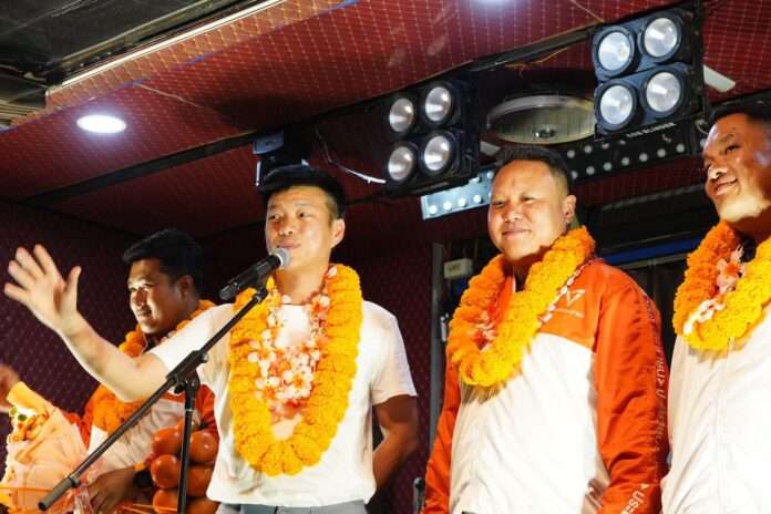 คนเหล่านี้รู้ดีว่าสิ่งที่พรรคประชาชนกำลังทำคือการสร้างยุคสมัยใหม่ ทำให้ประเทศไทยออกจากบ่วงเหล่านี้ เพราะเราเชื่อมั่นว่าปัญหาการทุจริตที่เป็นมารดาของสิ่งชั่วร้ายทั้งปวงจะต้องถูกกำจัด พรรคประชาชนภายใต้การนำของณัฐพงษ์ที่จะเป็นนายกรัฐมนตรีคนต่อไป สัญญาได้ว่าสิ่งผิดกฎหมายไม่ว่าจะเป็นทุนสีเทาทุนสีดำถ้า พรรคประชาชนมีอำนาจรับรองจัดการราบคาบแน่นอน ตนยืนยันได้ว่าพรรคประชาชนไม่ตระบัดสัตย์แน่นอน ปัญหาทั้งหมดเป็นเรื่องที่จัดการได้ นั่นจึงเป็นเหตุผลว่าทำไมการเลือกตั้งครั้งนี้ไม่ใช่แค่การเลือกตั้ง สส. ธรรมดา แต่คือการเลือกว่าตกลงแล้วประชาชนอยากได้รัฐบาลแบบไหน อยากได้รัฐบาลที่นำโดยณัฐพงษ์ ที่นำโดยอนุทิน หรือที่นำโดยธรรมนัส มีแค่สามตัวเลือกนี้ ถ้าประชาชนอยากได้ความเปลี่ยนแปลง อยากได้คนที่จะเข้าไปทำหน้าที่ ไม่เคยมีประวัติมัวหมองเรื่องการทุจริต มีวิสัยทัศน์แห่งการเปลี่ยนแปลง เป็นนักการเมืองที่คนเดิมๆ และกลุ่มผลประโยชน์เดิมๆ กลัว ต้องเลือกพรรคประชาชนเท่านั้น