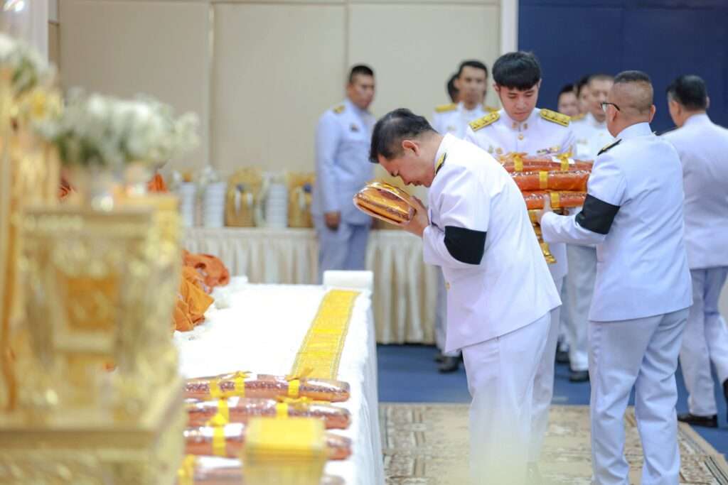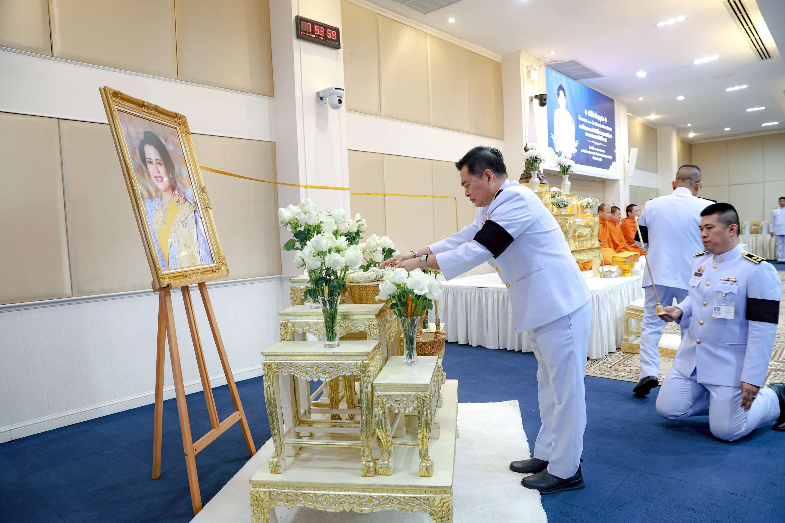 ทองน้อยหน้าพระฉายาลักษณ์ สมเด็จพระนางเจ้าสิริกิติ์ พระบรมราชินีนาถ พระบรมราชชนนีพันปีหลวง พร้อมทั้งนำกล่าวน้อมสำนึกในพระมหากรุณาธิคุณ จากนั้น พระสงฆ์ 10 รูป สวดพระพุทธมนต์ ประธานในพิธีและผู้บริหารถวายเครื่องไทยธรรมและปิ่นโตภัตตาหารแด่พระสงฆ์ ทอดผ้าไตรถวาย เพื่ออุทิศถวายเป็นพระราชกุศลโดยพร้อมเพรียงกัน