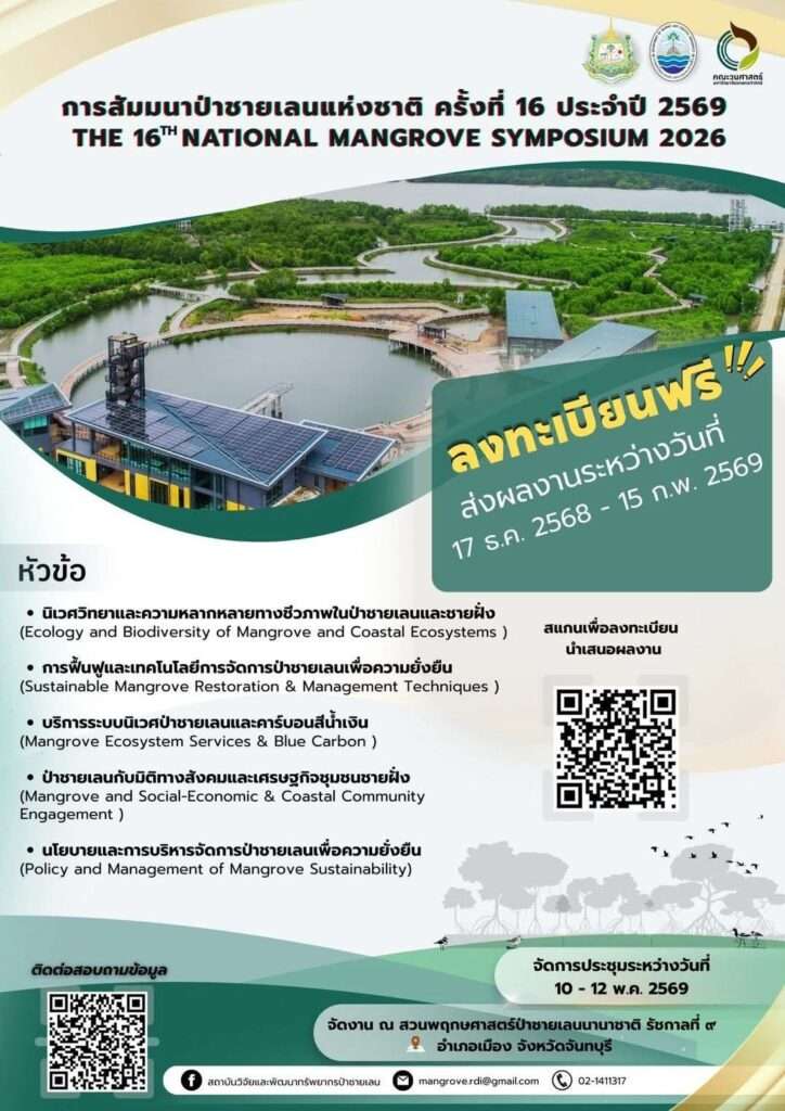 ทั้งนี้ กรมทะเล เชิญชวนนักวิชาการ นักวิจัย หน่วยงานภาครัฐ ภาคเอกชน เครือข่ายชุมชน และผู้สนใจ เข้าร่วมส่งผลงาน และร่วมการสัมมนา โดยสามารถลงทะเบียนและส่งผลงานวิชาการได้ในระหว่างวันที่ 17 ธันวาคม 2568 – 15 กุมภาพันธ์ 2569 เพื่อร่วมกันขับเคลื่อนองค์ความรู้ด้านป่าชายเลน สู่การอนุรักษ์ ฟื้นฟู และใช้ประโยชน์ทรัพยากรอย่างสมดุลและยั่งยืน