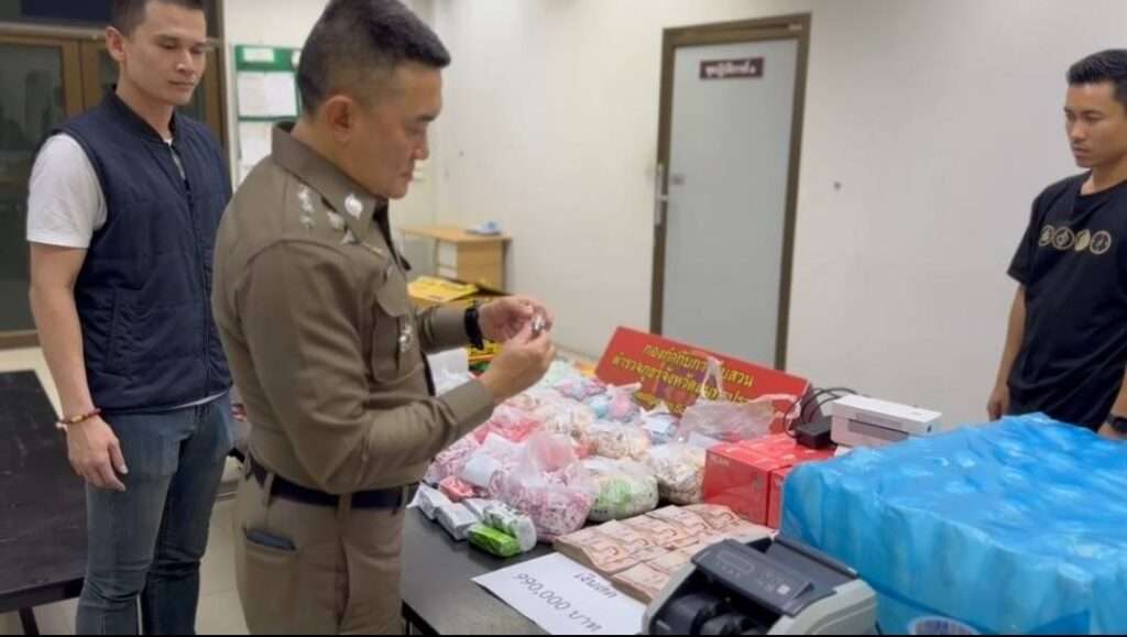 นอกจากนี้ เจ้าหน้าที่ได้ขยายผลเข้าตรวจค้นบ้านพักในหมู่บ้านพฤกษา วิลล์ 106 อ.ธัญบุรี จ.ปทุมธานี พบของกลางเพิ่มเติม ทั้งบุหรี่ไฟฟ้า เครื่องพิมพ์ฉลาก เครื่องนับธนบัตร เงินสดอีก 90,000 บาท และโทรศัพท์มือถือหลายเครื่อง ใช้เป็นหลักฐานการติดต่อซื้อขายในเครือข่าย