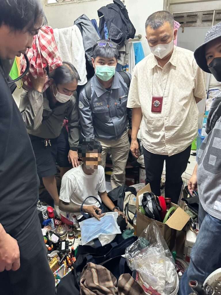 เมื่อเจ้าหน้าที่เรียกตรวจสอบ นาย MYAT THU แสดงอาการพิรุธอย่างชัดเจน จึงขอเข้าตรวจค้นโดยความยินยอม พบทรัพย์สินจำนวนมากซุกซ่อนอยู่ภายในห้องพัก ทั้งกระเป๋าผ้าธนาคาร ชุดว่ายน้ำ และหมอน ซึ่งเป็นทรัพย์สินที่ได้มาจากการลักทรัพย์