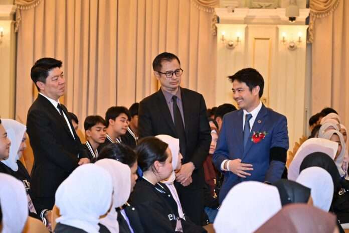 วันนี้ (3 กุมภาพันธ์ 69) เมื่อเวลา 12.30 น.ที่ตึกสันติไมตรี ทำเนียบรัฐบาล นายธีรทัย เจริญวงศ์ เลขาธิการสำนักงานศาลยุติธรรม พร้อมด้วยนายสุริยัณห์ หงษ์วิไล ผู้พิพากษาหัวหน้าศาลประจำสำนักประธานศาลฎีกา ประธานคณะทำงานดำเนินการโครงการเยาวชนไทย หัวใจเดียวกัน และคณะผู้บริหารสำนักงานศาลยุติธรรม นำเด็กและเยาวชนจากโครงการ “เยาวชนไทย หัวใจเดียวกัน” รุ่นที่ 10 (Belia Thai Sejiwa Sehati) ที่มีภูมิลำเนาอยู่ใน 3 จังหวัดชายแดนภาคใต้ ได้แก่ จังหวัดยะลา จังหวัดนราธิวาส จังหวัดปัตตานี และ 4 อำเภอ ในจังหวัดสงขลา ได้แก่ อำเภอจะนะ อำเภอนาทวี อำเภอเทพา และอำเภอสะบ้าย้อย จำนวน 120 คน เข้าเยี่ยมคารวะและรับโอวาทจากนายอนุทิน ชาญวีรกูล นายกรัฐมนตรีและรัฐมนตรีว่าการกระทรวงมหาดไทย โดยมี นายภราดร ปริศนานันทกุล รัฐมนตรีประจำสำนักนายกรัฐมนตรี เป็นตัวแทน นายกรัฐมนตรี