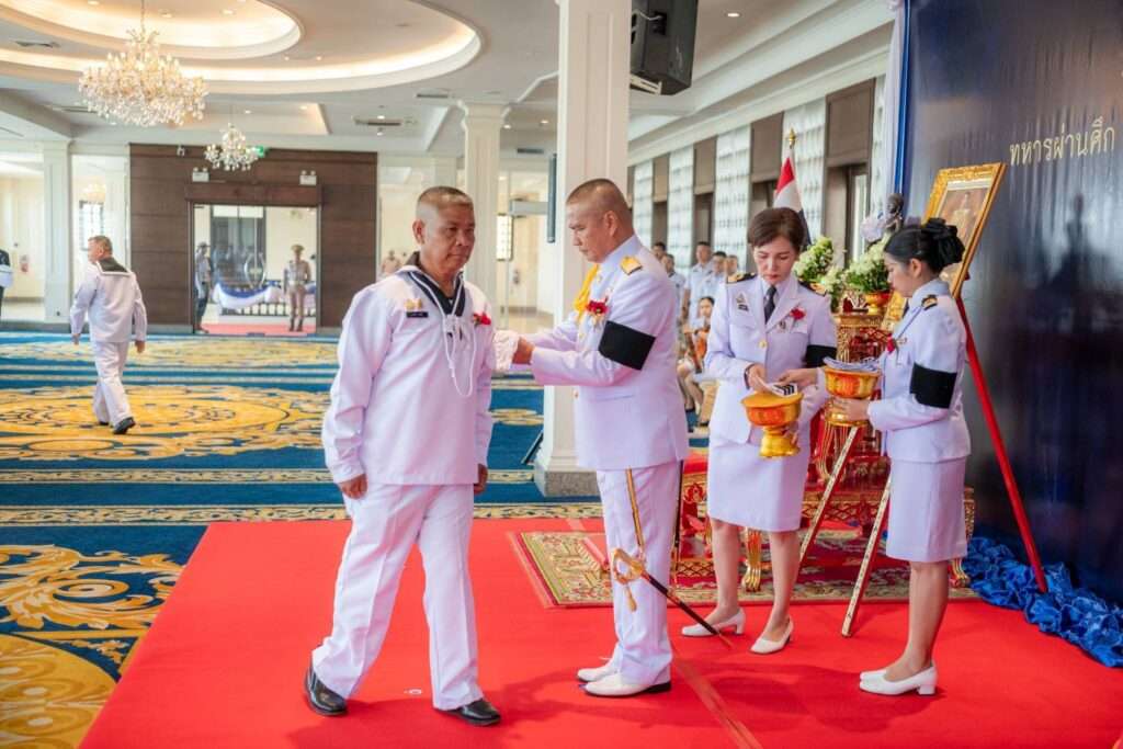 โอกาสนี้ ผู้บัญชาการทหารเรือได้กล่าวแก่ผู้ร่วมพิธีโดยมีใจความสำคัญว่า “กองทัพเรือขอแสดงความขอบคุณและขอสดุดีในคุณงามความดีของท่าน ที่ได้อุทิศตนปฏิบัติหน้าที่เพื่อปกป้องอธิปไตยและความมั่นคงของประเทศชาติ แม้ต้องแลกมาด้วยความสูญเสียอวัยวะสำคัญความเสียสละของท่านจะเป็นที่จดจำและเป็นแบบอย่างให้กับทหารเรือรุ่นต่อ ๆ ไป ดังพระบรมราโชวาทของพระบาทสมเด็จพระบรมชนกาธิเบศร มหาภูมิพลอดุลุยเดชมหาราช บรมนาถบพิตร ที่ว่า ทหารผ่านศึกเป็นผู้มีเกียรติ เพราะได้สละประโยชน์สุขส่วนตัว แม้กระทั่งเลือด เนื้อ และชีวิต เพื่อชาติบ้านเมืองและส่วนรวม เครื่องหมายยศที่ท่านได้รับในวันนี้ จึงมิใช่เพียงเครื่องหมายที่ถูกประดับบนเครื่องแบบ หากแต่เป็นเครื่องยืนยันถึงคุณความดี ความกล้าหาญ และความเสียสละอันสูงส่ง ที่ท่านได้อุทิศทั้งกายและใจเพื่อประเทศชาติกองทัพเรือขอให้ท่านภาคภูมิใจและตั้งมั่นรักษาเกียรติศักดิ์นั้นไว้เป็นแบบอย่างอันงดงามสืบไป กองทัพเรือขอเป็นกำลังใจให้ท่านและครอบครัวต่อสู้กับอุปสรรคใด ๆ จงมีกำลังกายกำลังใจที่ดี และจงภาคภูมิใจในความเสียสละของท่านตลอดไป”