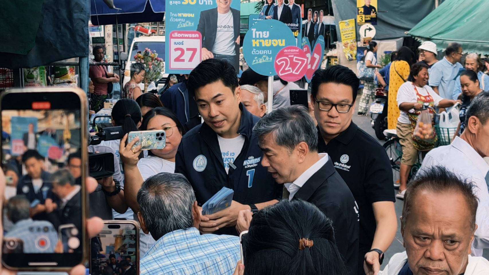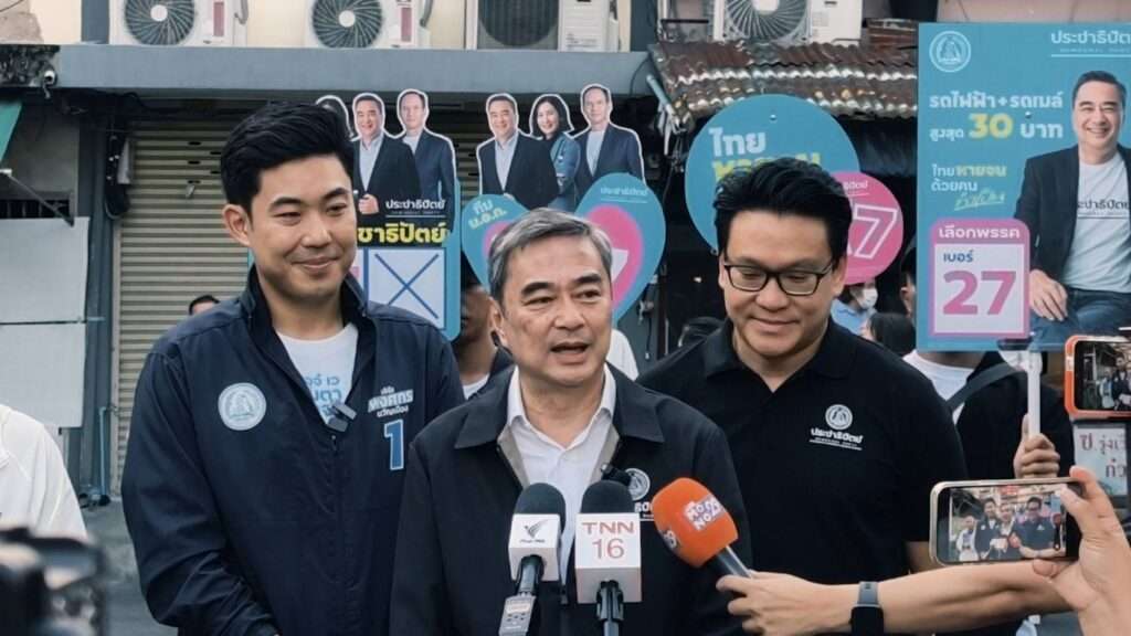 กรุงเทพมหานคร, วันที่ 4 กุมภาพันธ์ – นายอภิสิทธิ์ เวชชาชีวะ หัวหน้าพรรคประชาธิปัตย์ และนายสกลธี ภัททิยกุล รองหัวหน้าพรรค ดูแลพื้นที่กรุงเทพมหานคร พร้อมด้วย นายพงศกร ขวัญเมือง ผู้สมัคร สส.กทม. เขต 4 เบอร์ 1 เขตคลองเตย เขตวัฒนา ไปพบปะประชาชนที่ตลาดแสงทิพย์ ย่านพระโขนง โดยมีกระแสตอบรับเป็นอย่างดี ซึ่งมีประชาชนจำนวนมากทั้ง 2 ข้างทางยืนรอขอถ่ายรูป และสวมกอดนายอภิสิทธิ์ ตลอดทาง พร้อมบอกว่า เลือกพรรคประชาธิปัตย์หมดใจ