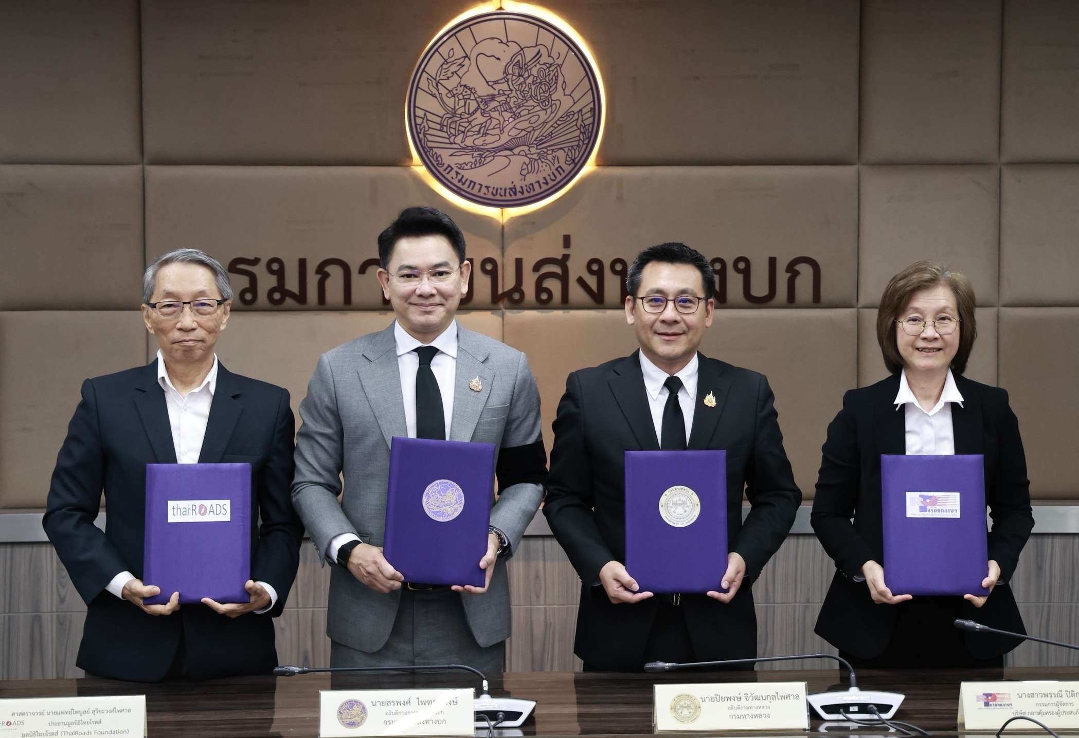 วันนี้ (4 กุมภาพันธ์ 2569) เวลา 14.00 น. ณ ห้องประชุม 1 อาคาร 1 ชั้น 3 กรมการขนส่งทางบก นายสรพงศ์ ไพฑูรย์พงษ์ อธิบดีกรมการขนส่งทางบก นายปิยพงษ์ จิวัฒนกุลไพศาล อธิบดีกรมทางหลวง นางสาวพรรณี ปิติกุลตัง กรรมการผู้จัดการบริษัท กลางคุ้มครองผู้ประสบภัยจากรถ จำกัด และ ศาสตราจารย์ นายแพทย์ไพบูลย์ สุริยะวงศ์ไพศาล ประธานมูลนิธิไทยโรดส์ ลงนามความร่วมมือการบูรณาการข้อมูลอุบัติเหตุทางถนน พร้อมเปิดตัวสถาบันวิจัยและวิเคราะห์ข้อมูลอุบัติเหตุทางถนนแห่งชาติ (TRADAR)มุ่งเป็นศูนย์กลางข้อมูลและงานวิจัยเชิงลึกระดับภูมิภาคและนานาชาติ