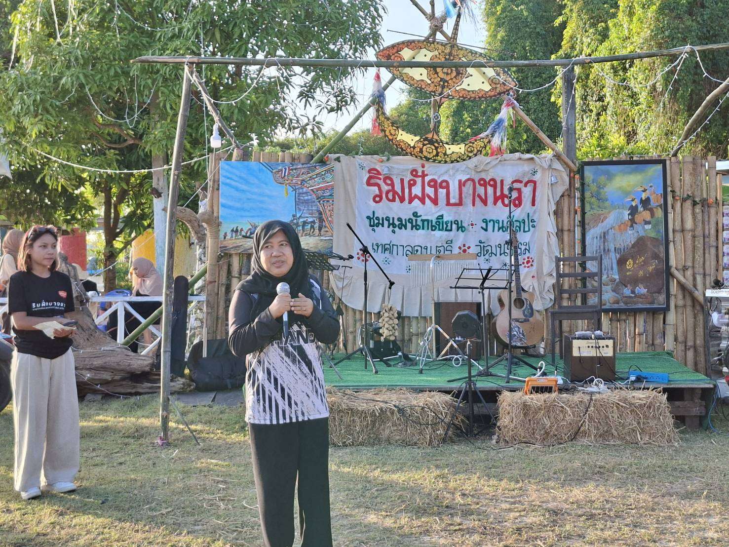 จากนั้นเวลา 16.30 น. มีการเปิดตัวหนังสือ “ริมฝั่งบางนรา” โดยนักเขียนชาวนราธิวาส “มาแซ ซุน แซงแซว” ตามด้วยการแสดงทาง “ศิลปวัฒนธรรม ดนตรี และกวีกาล” และแคมป์ปิ้งรอบกองไฟ นอนดื่มด่ำแสงดาวเดือน ตลอดค่ำคืน