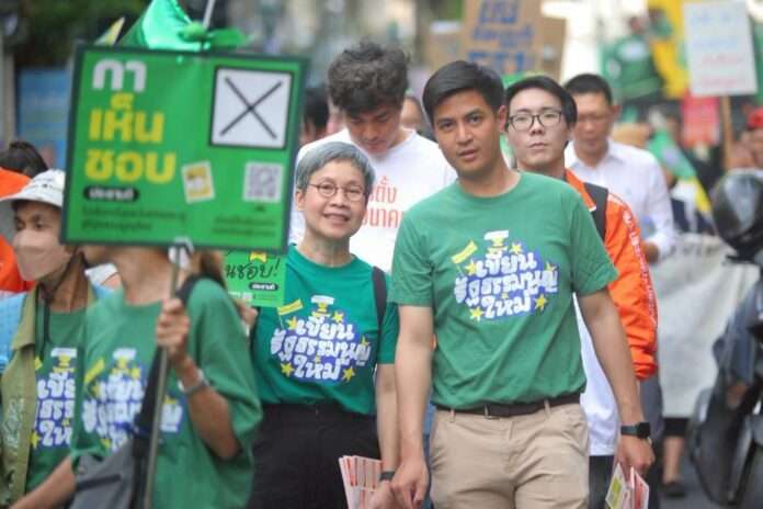 ปทุมวัน, วันที่ 4 กุมภาพันธ์ – ทีมบริหารรัฐบาลประชาชน พร้อมด้วยผู้สมัคร สส. บัญชีรายชื่อ พรรคประชาชน นำโดย พริษฐ์ วัชรสินธุ, ชัยวัฒน์ สถาวรวิจิตร, เพียงพนอ บุญกล่ำ, ณัฐยา บุญภักดี, พิศาล มาณวพัฒน์, มุนินทร์ พงศาปาน, และมณิสรา บารมีชัย ร่วมกิจกรรม “ขบวนสุดท้าย ปล่อยท่าไม้ตายประชาชน” เพื่อเดินขบวนแสดงพลัง “กาเห็นชอบ” ประชามติให้จัดทำรัฐธรรมนูญฉบับใหม่ในวันที่ 8 กุมภาพันธ์นี้ โดยเริ่มเดินขบวนจากอนุสาวรีย์ประชาธิปไตย ไปสิ้นสุดที่หอศิลปวัฒนธรรมแห่งกรุงเทพมหานคร สี่แยกปทุมวัน