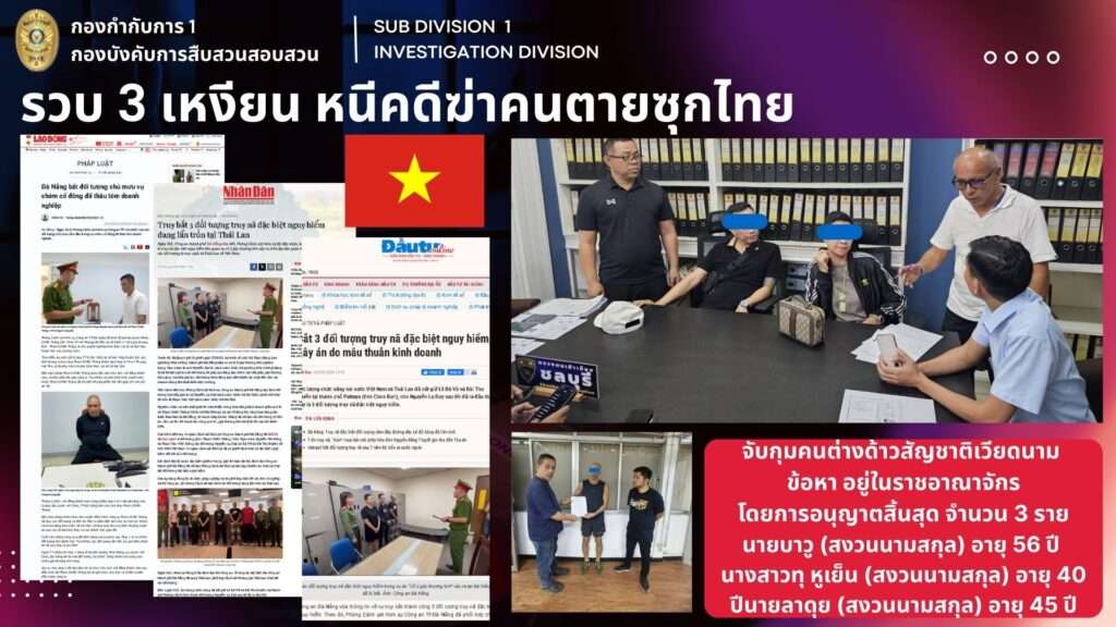 รวบ 3 ชาวเวียดนาม หนีคดีฆ่าคนตายซุกไทย