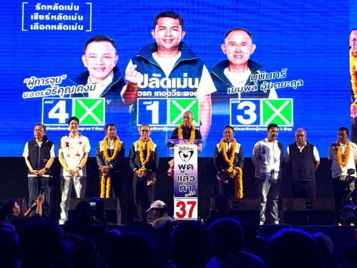 พัทลุง, วันที่ 6 ก.พ – นายพิพัฒน์ รัชกิจประการ แกนนำภาคใต้ และ นายชลัฐ รัชกิจประการ ผู้สมัคร สส.ระบบบัญชีรายชื่อพรรคภูมิใจไทย ขึ้นเวทีปราศรัยที่จังหวัดพัทลุงประกาศจุดยืนชัด พร้อมย้ำความเป็นลูกหลานคนพัทลุง มั่นใจสามารถ “ยกจังหวัด” คว้า สส. ครบทั้ง 3 เขต ด้วยนโยบายที่ทำได้จริงและตรงความต้องการของพี่น้องชาวพัทลุง บรรยากาศเวทีเต็มไปด้วยความคึกคัก มีประชาชนเข้ารับฟังจำนวนมาก