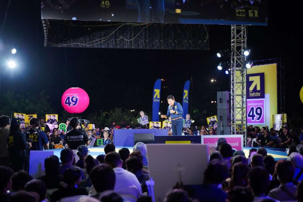 ทั้งนี้ เราต้องไม่กลัว AI แต่เราจะใช้ AI มาช่วยให้เราเรียนได้ดีขึ้น ช่วยทำงานได้มากขึ้น ฝึกให้เป็นคู่คิดที่ชาญฉลาด เชื่อว่า AI จะไม่สามารถทดแทนเราได้ ต้องทำให้คนไทยได้เรียนเอไอ นำ AI มาทำงานให้กับเรา คนถาม AI หนึ่งคำถาม ต้องใช้คอมพิวเตอร์ขนาดใหญ่ ต้องใช้น้ำอย่างน้อย 1 ลิตร เพื่อให้คอมพิวเตอร์ทำงาน ขณะนี้ UN ประกาศ น้ำบนโลกมีปัญหา ดังนั้น เราต้องฉลาดพอที่จะใช้ AI ให้เกิดประสิทธิภาพสูงสุดนอกจากนี้ พรรคไทยก้าวใหม่จะทำธนาคารน้ำใต้ดิน นำน้ำที่เก็บมาใช้ในช่วงหน้าแล้ง เป็นการแก้ปัญหาแบบเบ็ดเสร็จ มั่นใจว่าพรรคไทยก้าวใหม่สามารถแก้น้ำหลากน้ำแล้งได้ทั้งประเทศ ทำสำเร็จแล้ว “ชุมแพโมเดล” จ.ขอนแก่น พร้อมเสนอทำพืชหลังนา ทำให้เกษตรกรมีรายได้เพิ่มขึ้น ดังนั้น น้ำจึงเป็นสิ่งที่พรรคฯ ให้ความสำคัญ หากพรรคไทยก้าวใหม่ได้เข้าไปเป็นรัฐบาล จะทำให้เกิดขึ้นทั่วประเทศพรรคไทยก้าวใหม่ยังมีนโยบายฝึกอาชีพให้คนอยู่ในเรือนจำ ซึ่งเรือนจำที่ประเทศญี่ปุ่นเป็นโรงงานสร้างรายได้ให้กับผู้ต้องขังทุกคนได้มีอาชีพ การศึกษาคือการเพิ่มทักษะให้กับผู้คน แม้แต่คนในเรือนจำ ดังนั้น พรรคไทยก้าวใหม่จะตั้งโรงงานในเรือนจำ ทำให้ทุกคนตื่นมาทำงาน มีรายได้ สามารถกลับมาอยู่ในสังคมได้