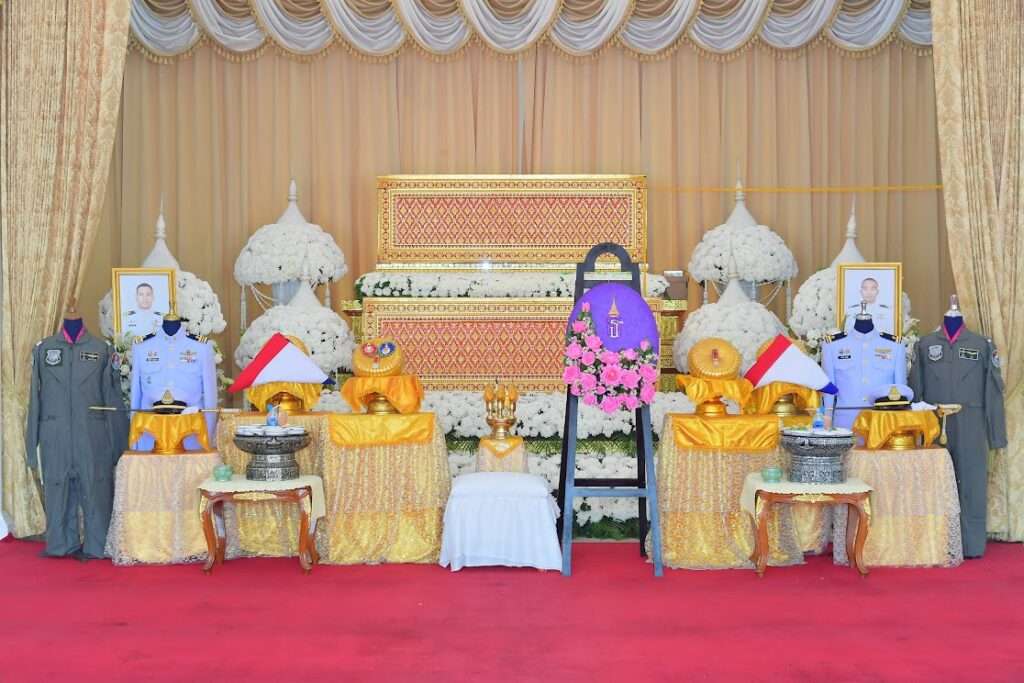 โดยมี นายทหารชั้นผู้ใหญ่กองทัพอากาศ กำลังพลกองทัพอากาศ ครอบครัว ญาติ และเพื่อนทหารร่วมรุ่นของนักบินทั้ง 2 ท่าน ร่วมพิธีฯ เป็นจำนวนมาก ณ ฌาปนสถานกองทัพอากาศ ศาลาทักษิณาประดิษฐ วัดพระศรีมหาธาตุวรมหาวิหาร แขวงอนุสาวรีย์ เขตบางเขน กรุงเทพฯ ซึ่งบรรยากาศเต็มไปด้วยความเศร้าโศก