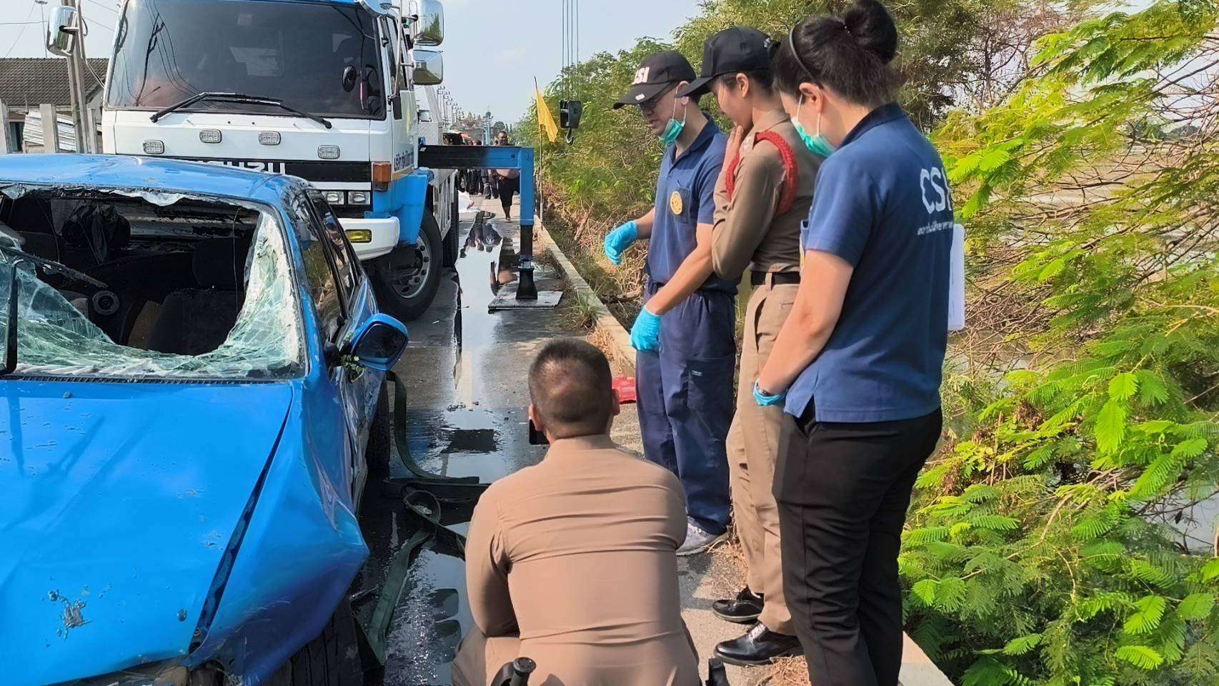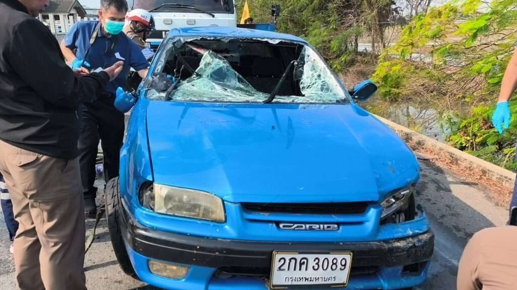 เมื่อเวลา 08.30 น.วันที่ 9 ม.ค.69 เจ้าหน้าที่ตำรวจสภชัยพฤกษ์ ได้รับแจ้งเหตุ รถเก๋งตกลงไปในคลองคันแอน ตำบลคลองข่อย อำเภอปากเกร็ดจังหวัดนนทบุรี มีผู้เสียชีวิตติดอยู่ในรถ 1 ราย พร้อมด้วยเจ้าหน้าที่ป่อเต็กตึ๊งรีบตรวจสอบ ที่เกิดเหตุพบรถเก๋งสีน้ำเงินยี่ห้อ Toyota หมายเลขทะเบียน 2 กค. 3089 จมอยู่ในน้ำทางเจ้าหน้าที่ได้ช่วยกันนำร่างผู้เสียชีวิตนั่งอยู่รถฝั่งคนขับออกมาจากรถทราบชื่อคือนายจีระศักดิ์ ผาสีกาย อายุ 47 ปี เป็นชาวจังหวัดสกลนคร สภาพศพสวมเสื้อยืดแขนสั้นสีดำ ใส่กางเกงยีนส์ขาสั้น ตรวจสอบภายในกระเป๋าสะพายพบบัตรประชาชน เอกสารรถ ลอตเตอรี่จำนวน 4 ใบ และกุญแจรถ จยย. ตรวจสอบภายในรถพบกระป๋องเบียร์ 1 กระป๋องได้ประสานรถยกนำรถเก๋งคันดังกล่าวขึ้นมาจากน้ำ
