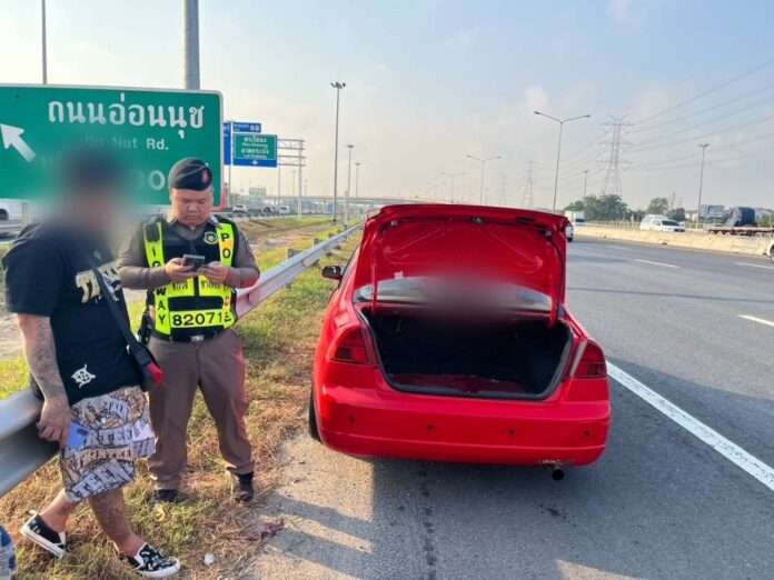 ทางหลวง รวบ ”รส บางเสาธง“ ผู้ต้องหายาเสพติดรายใหญ่ หลังไปเจอจอดรถยางแตกอยู่ริมถนน เข้าช่วยเหลือแต่เจอท่าทีพิรุท ตรวจสอบพบมีหมายจับก่อนจนมุม