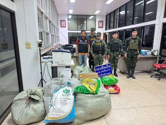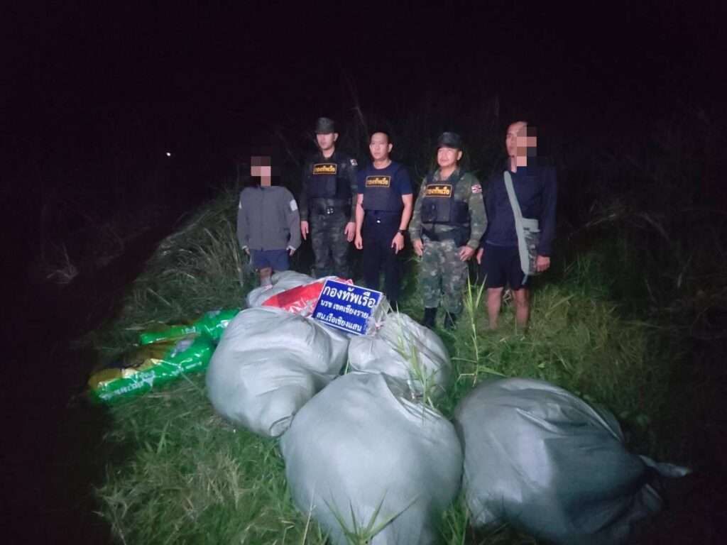 พลเรือตรี ปารัช รัตนไชยพันธ์ โฆษกกองทัพเรือ เปิดเผยว่า เมื่อวันที่ 8 กุมภาพันธ์ 2569 เวลา 19.00 น. หน่วยเรือรักษาความสงบเรียบร้อยตามลำแม่น้ำโขง (นรข.) เขตเชียงราย ได้จัดชุดปฏิบัติการออกเฝ้าตรวจพื้นที่รับผิดชอบตามแนวลำน้ำโขง เพื่อป้องกันและปราบปรามการลักลอบกระทำผิดกฎหมายข้ามชาติตามปกติ ผลการปฏิบัติ ตรวจพบการลักลอบนำสิ่งของผิดกฎหมายโดยไม่ผ่านพิธีการทางศุลกากร บริเวณริมฝั่งแม่น้ำโขง บ้านห้วยเกี๋ยง หมู่ 1 ตำบลเวียง อำเภอเชียงแสน จังหวัดเชียงราย ประกอบด้วย ใบกระท่อม น้ำหนักประมาณ 154 กิโลกรัม ยาแก้ไอ จำนวน 1,191 ขวด พร้อมรถจักรยานยนต์ จำนวน 1 คัน ซึ่งเป็นขบวนการยาเสพติดและสารเสพติดข้ามชาติในพื้นที่ชายแดน