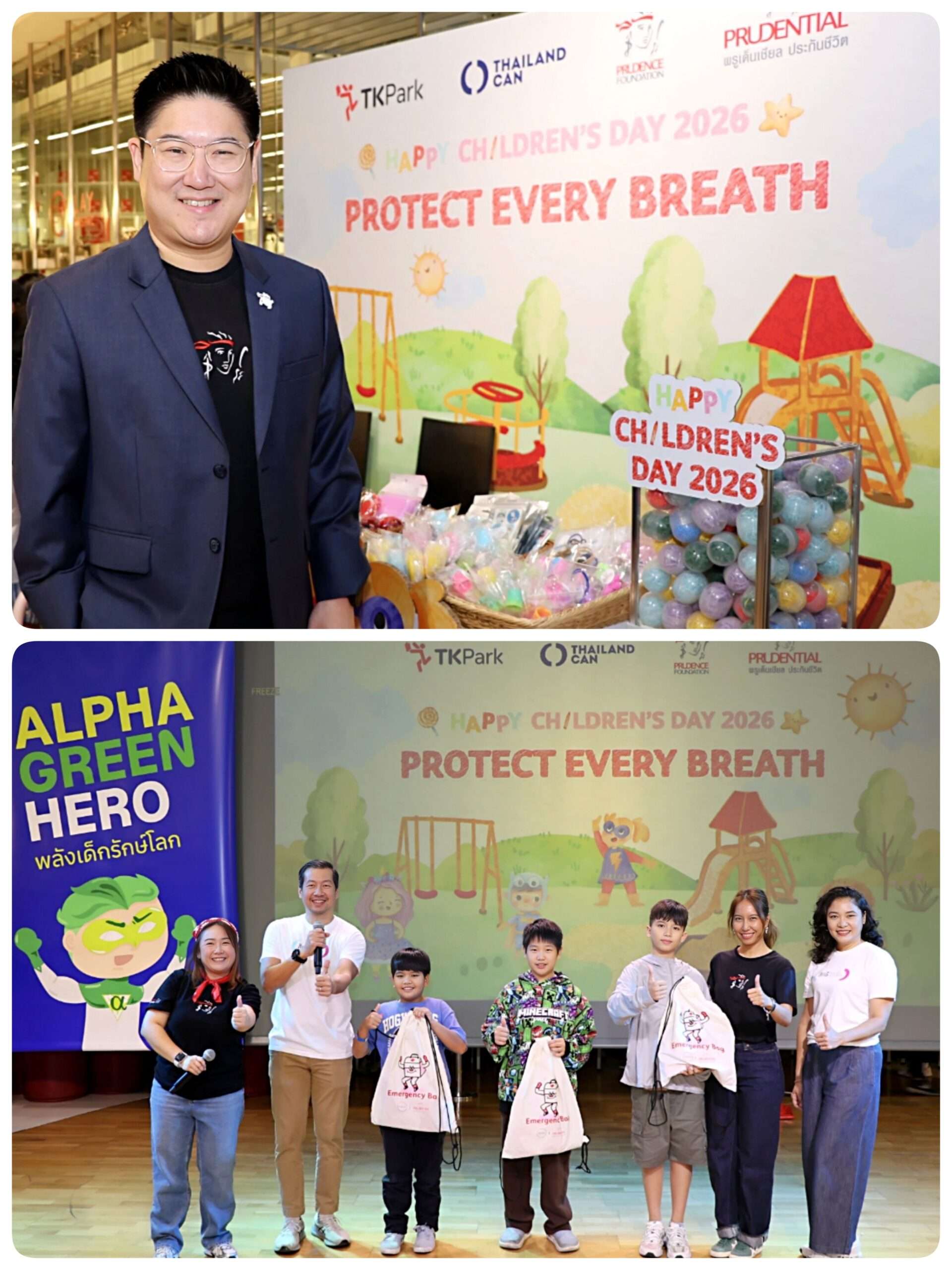 นายอิฎฐ์ อภิรักษ์ติวงศ์ ประธานเจ้าหน้าที่บริหารสายงานพัฒนาองค์กร พรูเด็นเชียล ประเทศไทย พร้อมด้วยพนักงานของบริษัทฯ ร่วมกับสมาคมเครือข่ายอากาศสะอาดเพื่อสุขภาพ และสถาบันอุทยานการเรียนรู้ TK Park จัดกิจกรรมวันเด็กแห่งชาติประจำปี 2569 ภายใต้แนวคิด “Alpha Green Hero พลังเด็กรักษ์โลก” ผ่านบูธกิจกรรม “Protect Every Breath – พลังเด็กปกป้องทุกลมหายใจ” ส่งเสริมการเรียนรู้ถึงความสำคัญของอากาศสะอาด สิ่งแวดล้อมที่ยั่งยืน พร้อมรับมือกับความท้าทายจากสภาพอากาศที่เปลี่ยนแปลงในปัจจุบันให้แก่เด็กและเยาวชน ณ อุทยานการเรียนรู้ TK Park ชั้น 8 ศูนย์การค้าเซ็นทรัลเวิลด์ เร็วๆ นี้