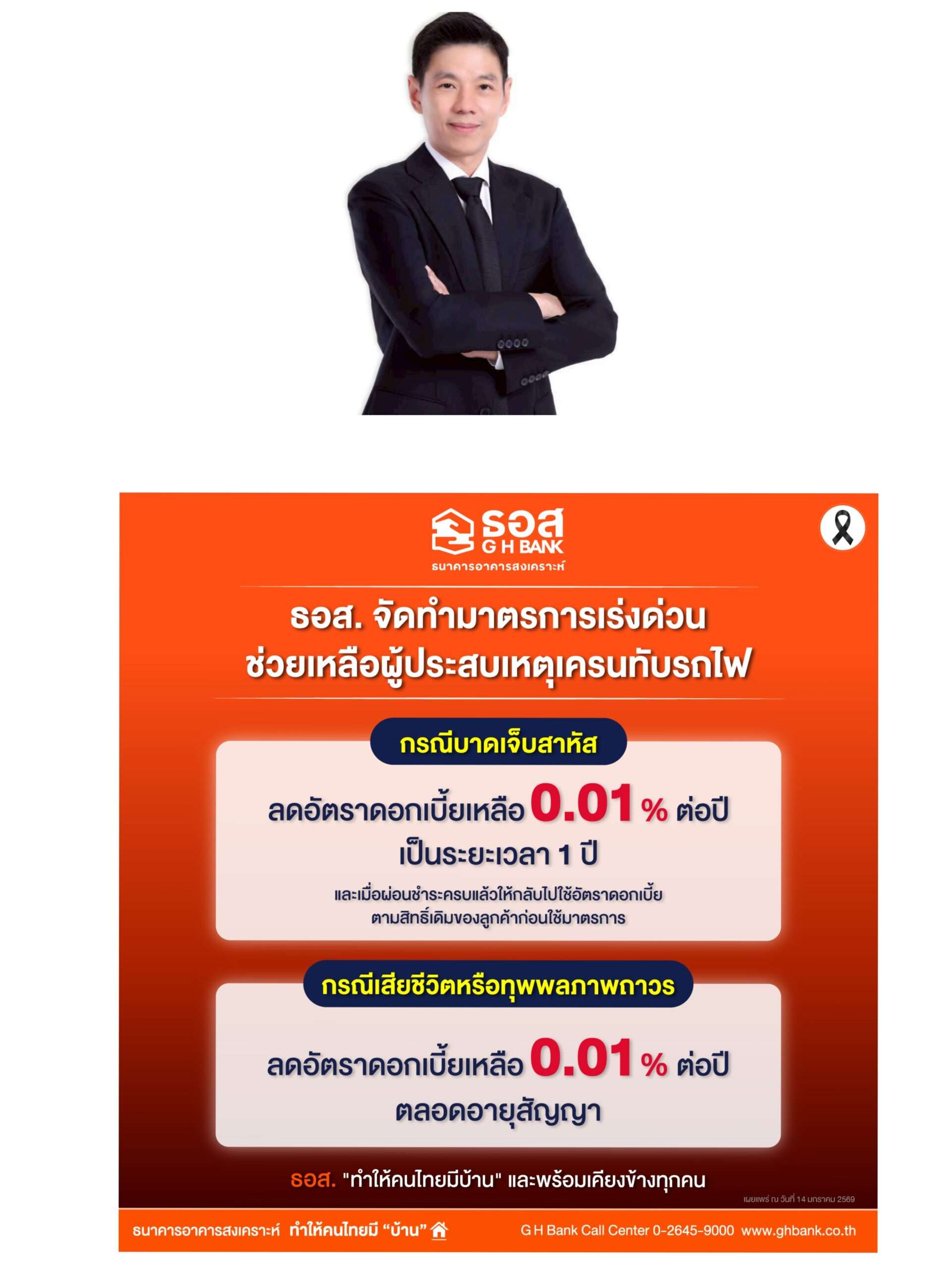 ธอส. จัดทำมาตรการเร่งด่วนช่วยเหลือลูกค้าที่ประสบเหตุเครนหล่นทับรถไฟ