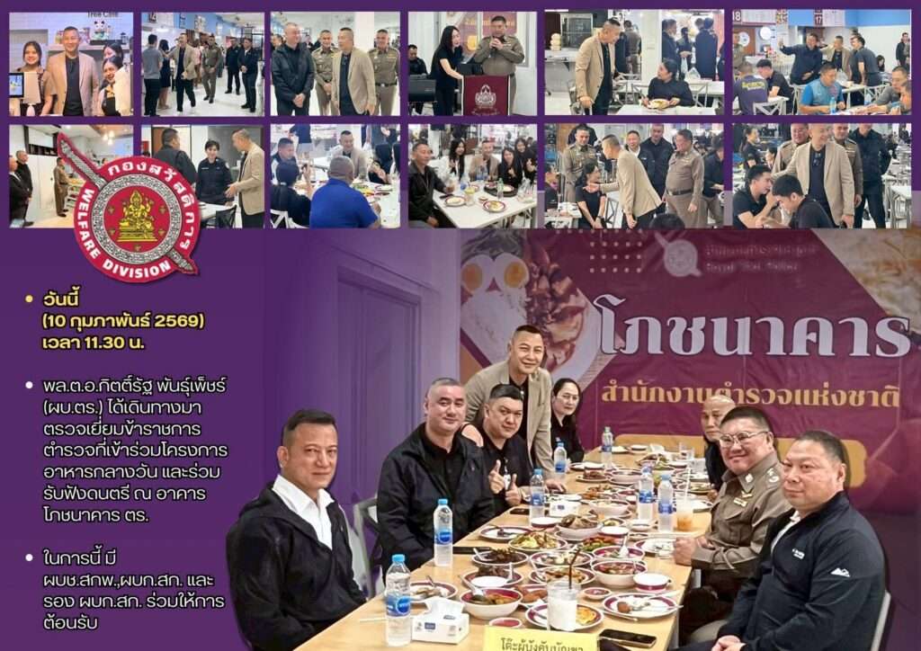 วันนี้ (10 กุมภาพันธ์ 2569) เวลา 11.30 น. พล.ต.อ.กิตติ์รัฐ พันธุ์เพ็ชร์ ผู้บัญชาการตำรวจแห่งชาติ (ผบ.ตร.) พร้อมด้วย พล.ต.ท.ชัยต์พจน สูวรรณรักษ์ ผู้บัญชาการสำนักงานกำลังพล/รองโฆษกสำนักงานตำรวจแห่งชาติ ตรวจเยี่ยมข้าราชการตำรวจผู้มารับประทานอาหารกลางวัน ตามโครงการช่วยเหลือค่าอาหารให้กับข้าราชการตำรวจในหน่วยที่มีที่ตั้งภายในสำนักงานตำรวจแห่งชาติ โดยมี พล.ต.ต.ยุทธนา จอนขุน ผู้บังคับการกองสวัสดิการ, พล.ต.ต.กรีธา ตันคณารัตน์ ผู้บังคับการกองอัตรากำลัง และข้าราชการตำรวจในสังกัดสำนักงานกำลังพล ให้การต้อนรับ ณ อาคารโภชนาคาร สำนักงานตำรวจแห่งชาติ