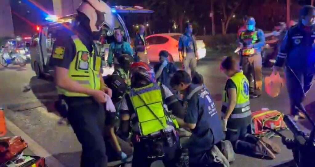 สลดกลางดึก ถนนพหลโยธินขาออก บิ๊กไบก์ไม่ติดป้ายทะเบียน ซิ่งความเร็วสูง พุ่งเฉี่ยวชนจักรยานยนต์แกร็บ ก่อนเสียหลักอัดต้นไม้–เสาไฟ คนขี่กระเด็นไกลกว่า 30 เมตร เสียชีวิตคาที่ ขณะที่แกร็บขาขาดอาการโคม่า ตำรวจเร่งไล่เช็กกล้องวงจรปิดหาสาเหตุแท้จริง