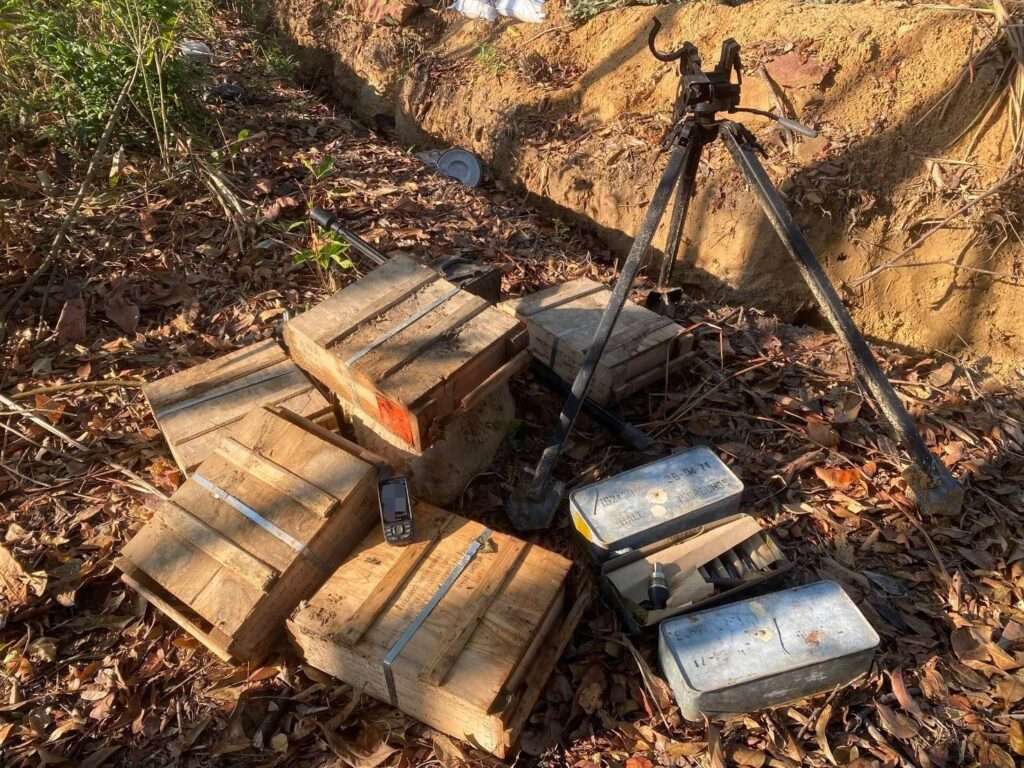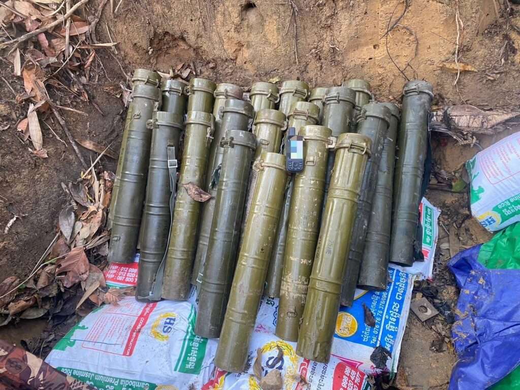 จากการตรวจสอบพื้นที่ พบ ฐานปฏิบัติการของฝ่ายกัมพูชา (กพช.) จำนวน 3 แห่ง เชื่อมต่อถึงกันด้วยแนวคูเลต สะท้อนถึงการจัดตั้งและใช้พื้นที่ดังกล่าวเป็นฐานทางทหารอย่างชัดเจน โดยหน่วยสามารถตรวจยึด สรรพาวุธที่ถูกละทิ้ง (AXO) ภายในฐานดังกล่าว ได้จำนวน 4 รายการ ได้แก่