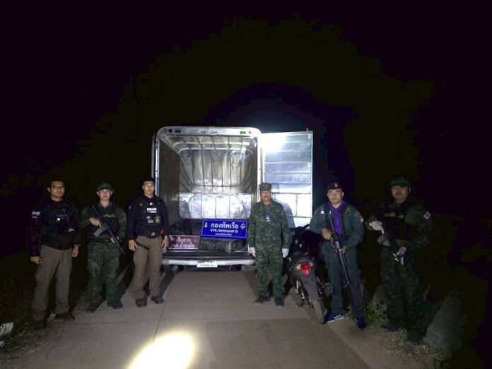 โดยเมื่อคืน เวลา 01.00 น. วันที่ 11 กุมภาพันธ์ 2569 เจ้าหน้าที่ตรวจพบความเคลื่อนไหวต้องสงสัยบริเวณริมฝั่งแม่น้ำโขง หลังสถานีใบยาปากสวย บ้านปากสวยน้อย ตำบลบ้านเดื่อ อำเภอเมือง จังหวัดหนองคาย เจ้าหน้าที่ได้แสดงตัวเข้าดำเนินการตามขั้นตอน แต่กลุ่มผู้กระทำความผิดอาศัยความมืดและความชำนาญพื้นที่หลบหนีไปได้ จากการตรวจค้นพื้นที่โดยรอบ ตรวจพบของกลางจำนวนมาก ประกอบด้วย ยาเสพติดให้โทษประเภท 1 (ยาบ้า) จำนวน 7 กระสอบ ประมาณ 2,370,000 เม็ด รถกระบะตู้ทึบสีขาว ยี่ห้อ Mitsubishi Triton หมายเลขทะเบียน ฒณ 327 กรุงเทพมหานคร จำนวน 1 คัน และรถจักรยานยนต์ Honda Wave i สีดำ ไม่ติดแผ่นป้ายทะเบียน จำนวน 1 คัน ซึ่งใช้เป็นพาหนะเตรียมการขนย้ายยาเสพติดเข้าสู่พื้นที่ตอนในของประเทศไทย