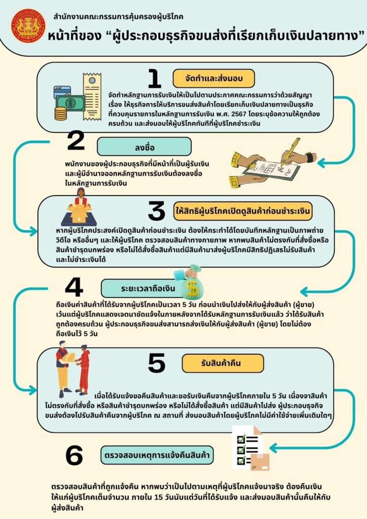 ออเดอร์ครั้งใหม่จากระบบ และหลังจากที่มีออเดอร์ใหม่เข้ามาพนักงานจะจ่าหน้าพัสดุไปยังผู้รับรายใหม่ เพื่อจัดส่งพัสดุและเรียกเก็บเงินปลายทางกับลูกค้าคนต่อไป