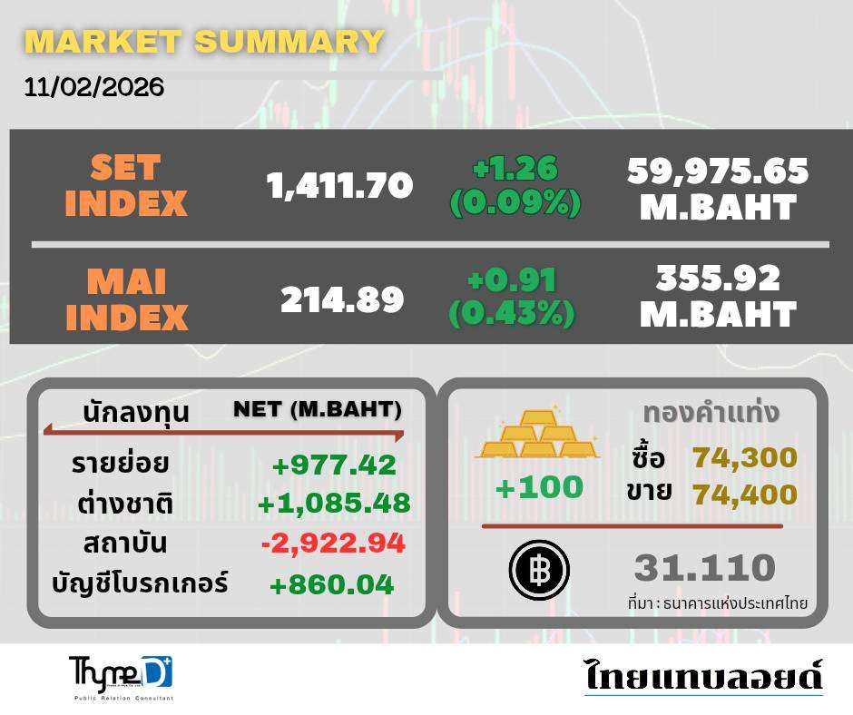 สรุปภาวะการลงทุนในตลาดหลักทรัพย์ ประจำวันที่ 11 กุมภาพันธ์ 2569