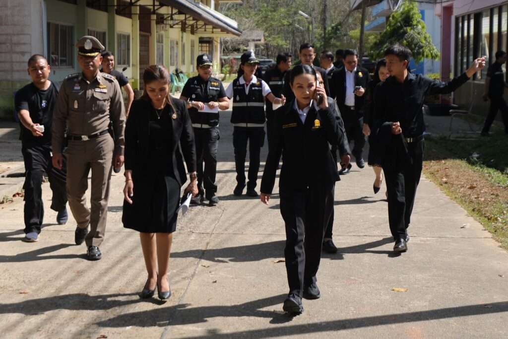 จากนั้น รมว.ศธ. ได้เดินทางไปโรงเรียนพะตงประธานคีรีวัฒน์ เพื่อรับฟังรายงานสถานการณ์จากเจ้าหน้าที่ชุดพิสูจน์หลักฐานที่ได้เข้าเก็บหลักฐานเพิ่มเติมภายในโรงเรียน และติดตามมาตรการดูแลความปลอดภัยของโรงเรียนอย่างใกล้ชิด พร้อมให้กำลังใจผู้บริหาร ครู นักเรียน และผู้ปกครองที่ได้รับผลกระทบ