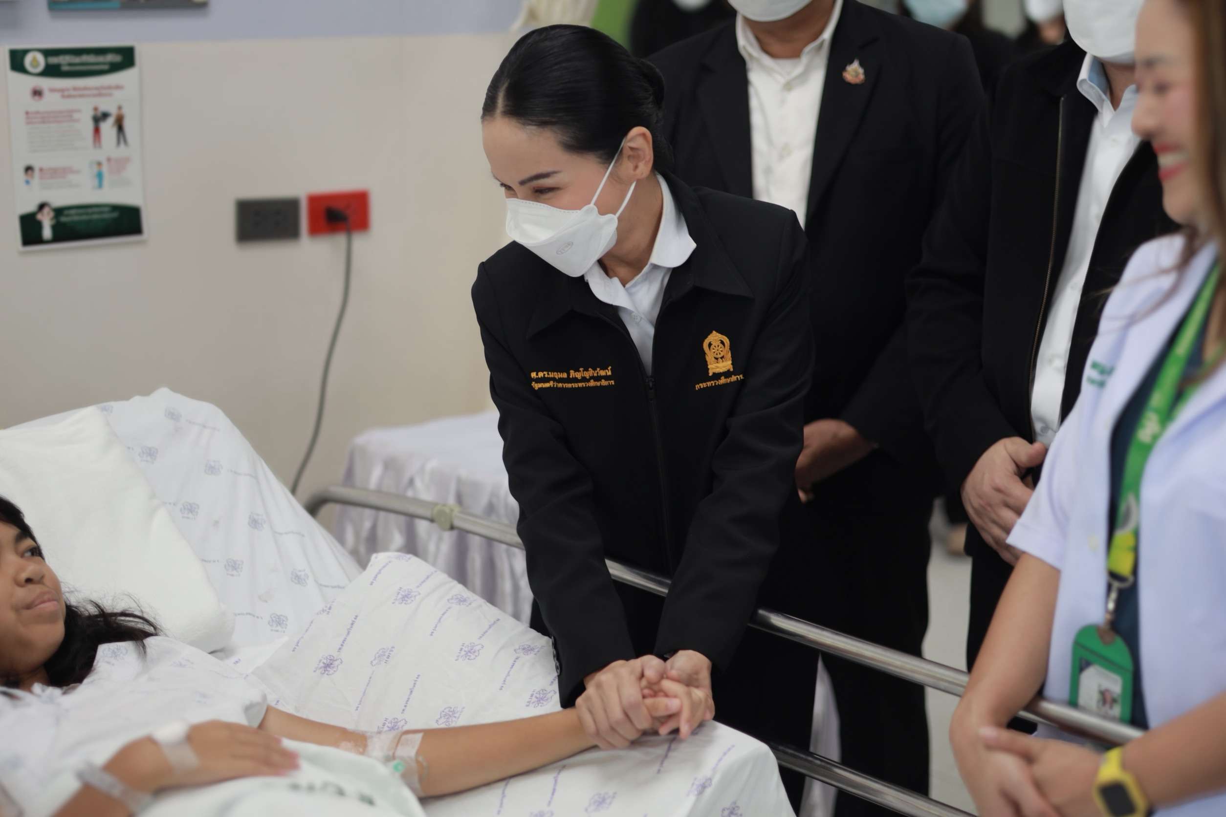 โดย ศ.ดร.นฤมล ได้พูดคุยสอบถามอาการกับทีมแพทย์และผู้ปกครองอย่างละเอียด โดยได้มอบเงินส่วนตัวจำนวนหนึ่ง เพื่อช่วยเหลือครอบครัวนักเรียน พร้อมกล่าวชื่นชมเด็กนักเรียนที่มีสติและความเข้มแข็งในช่วงเวลาวิกฤต “เหตุการณ์ที่เกิดขึ้นเป็นเรื่องสะเทือนใจอย่างยิ่ง กระทรวงศึกษาธิการไม่ได้นิ่งนอนใจ ดิฉันตั้งใจมาเพื่อให้กำลังใจเด็กและครอบครัว ขอชื่นชมความกล้าหาญและสติของนักเรียนที่สามารถควบคุมตนเองในสถานการณ์คับขันได้เป็นอย่างดี วันนี้ได้พูดคุยกับคุณหมอแล้ว อาการโดยรวมปลอดภัย ขอให้เด็กพักผ่อนให้เต็มที่ ไม่ต้องกังวลเรื่องการเรียน กระทรวงฯ จะดูแลอย่างเต็มที่ ทั้งด้านการรักษาพยาบาลและการเยียวยาทางจิตใจ”