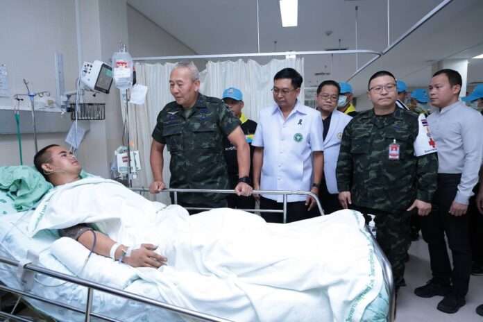สำหรับภารกิจในช่วงบ่าย โฆษกกองทัพบกกล่าวว่า ด้วยผู้บัญชาการทหารบกได้มีความห่วงใยกำลังพลที่ได้รับบาดเจ็บจากเหตุเหยียบทุ่นระเบิดในพื้นที่ อ.กันทรลักษ์ จ.ศรีสะเกษ เมื่อวันที่ 11 ก.พ.69 จึงได้เดินทางไปเยี่ยมเยียนและติดตามอาการของพลทหาร ปริวัตร์ มีมานะ ด้วยตนเอง ที่โรงพยาบาลสุรินทร์ อ.เมือง จ.สุรินทร์ โดยผู้บัญชาการทหารบกได้กล่าวขอบคุณในความเสียสละและความมุ่งมั่นทุ่มเทปฏิบัติภารกิจที่ได้รับมอบหมายอย่างเต็มที่ พร้อมทั้งให้กำลังใจแก่กำลังพลผู้บาดเจ็บและครอบครัว โดยยืนยันว่ากองทัพบกจะดูแลช่วยเหลือกำลังพลให้สามารถกลับมาดำรงชีวิตประจำวันได้ตามปกติอย่างดีที่สุด พร้อมกันนี้ ได้กำชับผู้บังคับหน่วยให้ติดตามอาการและแผนการรักษาของทีมแพทย์อย่างใกล้ชิด รวมถึงเร่งดูแลให้กำลังพลได้รับสิทธิและสวัสดิการอย่างครบถ้วนโดยเร็ว ขณะเดียวกันให้เน้นย้ำกำลังพลในพื้นที่ ทบทวนและปฏิบัติตามแผนยุทธการอย่างเคร่งครัด คงการเตรียมกำลังให้มีความพร้อมอยู่เสมอ ควบคู่กับการยกระดับมาตรการความปลอดภัย และเพิ่มความรอบคอบในการปฏิบัติภารกิจ เพื่อความปลอดภัยสูงสุดของกำลังพล ในการพิทักษ์อธิปไตยและดูแลประชาชนตามแนวชายแดนอย่างเต็มกำลัง