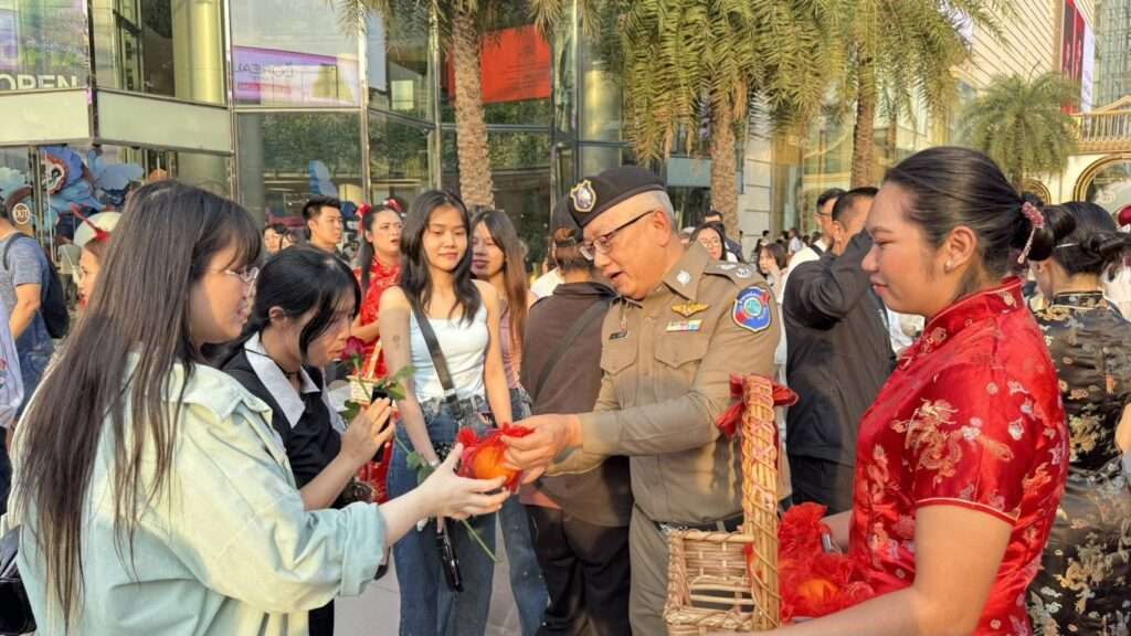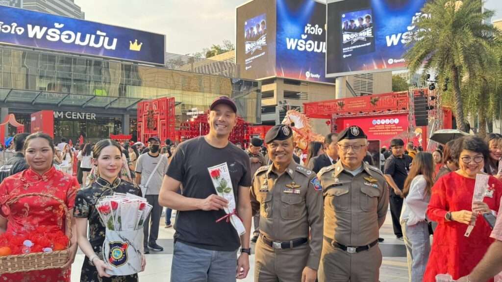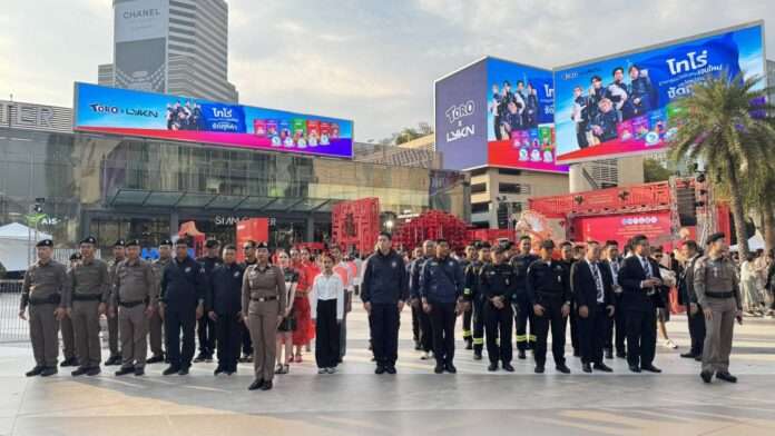 วันนี้ (14 ก.พ.69 เวลา 17.00 น.) พล.ต.ท.ศักย์ศิรา เผือกอ่ำ ผบช.ทท. , พล.ต.ต.ดนุ กล่ำสุ่ม ผบก.ทท.1, พ.ต.อ.ศราวุธ ตันกุล , พ.ต.อ.วีระวิทธ์ ผลประสิทธิ์ , พ.ต.อ.ทรงวุฒิ เชื้อพลากิจ รอง ผบก.ทท.1, พ.ต.อ.แมน รถทอง ผกก.กก.สืบสวน บช.ทท. , พ.ต.อ.ปิยะพงษ์ เอนสาร ผกก.1 บก.ทท.1 และ พ.ต.ท.ปฏิญญา เนียมหอม สวญ.ส.ทท.2 กก.1 บก.ทท.1 ตรวจเยี่ยมข้าราชการตำรวจท่องเที่ยว ล่ามแปล และ ฝ่ายรักษาความปลอดภัยห้างสรรพสินค้าสยามพารากอน ที่ปฏิบัติหน้าที่ดูแลความปลอดภัยและอำนวยความสะดวกให้นักท่องเที่ยว ณ ลานพาร์คพารากอน ห้างสรรพสินค้าพารากอน กรุงเทพฯ จากนั้นได้ร่วมกันแจกของที่ระลึกให้กับนักท่องเที่ยว พร้อมทั้งประชาสัมพันธ์แอปพลิเคชั่น Thailand Tourist Police และสายด่วนรับแจ้งเหตุ 1155 ในงานเทศกาลตรุษจีนประเทศไทย 2569 สยามพารากอน ประจำปี 2568 เพื่อสร้างความเชื่อมั่น สร้างบรรยากาศการท่องเที่ยวปลอดภัย และพร้อมต้อนรับนักท่องเที่ยวที่จะเดินทางมาเที่ยวและเฉลิมฉลองเทศกาลตรุษจีนในประเทศไทย