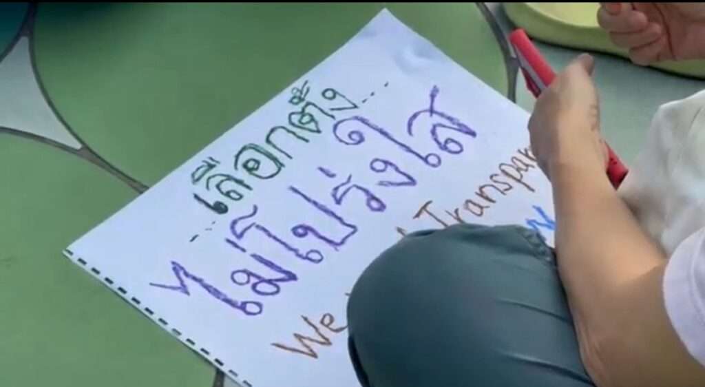 ขณะเดียวกัน ทางกลุ่มยังจัดเวทีปราศรัยสาธารณะ เพื่อเปิดพื้นที่ให้ตัวแทนภาคประชาชน นักกิจกรรม และผู้ร่วมชุมนุม ร่วมแสดงความคิดเห็นและส่งเสียงสะท้อน โดยใช้ข้อความ “นับใหม่อาจไม่พอ #กกตต้องชดใช้” เป็นหนึ่งในข้อเรียกร้องหลักของกิจกรรมครั้งนี้