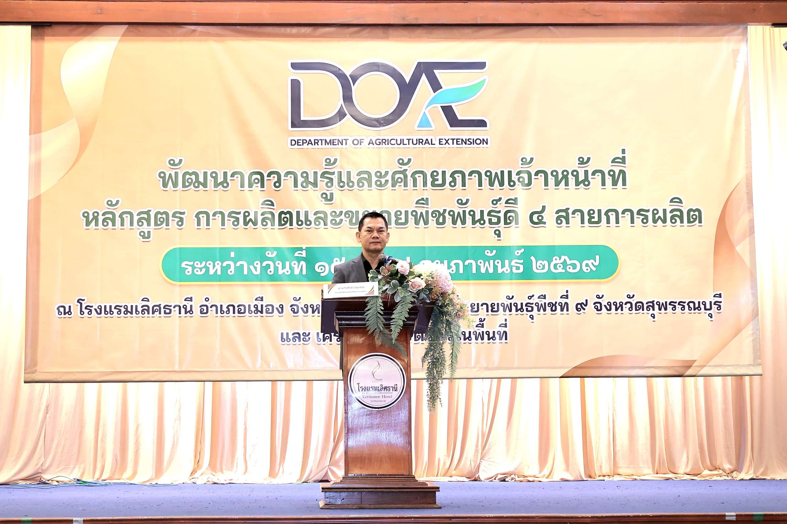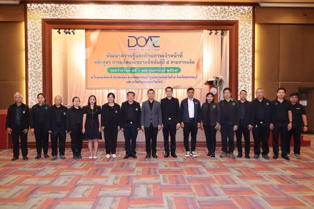 กรมส่งเสริมการเกษตร เปิดการพัฒนาความรู้และศักยภาพเจ้าหน้าที่ หลักสูตร การผลิตและขยายพืชพันธุ์ดี 4 สายการผลิต เพื่อเสริมสร้างองค์ความรู้และศักยภาพให้แก่เจ้าหน้าที่กรมส่งเสริมการเกษตรทั่วประเทศ พร้อมยกระดับการทำงานแบบบูรณาการเพื่อเพิ่มประสิทธิภาพการผลิตภาคการเกษตรและสร้างความมั่นคงทางอาหารอย่างยั่งยืน ณ โรงแรมเลิศธานี จ.สุพรรณบุรี