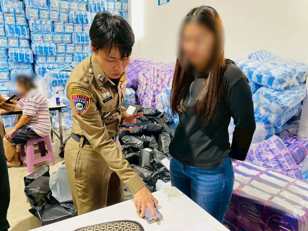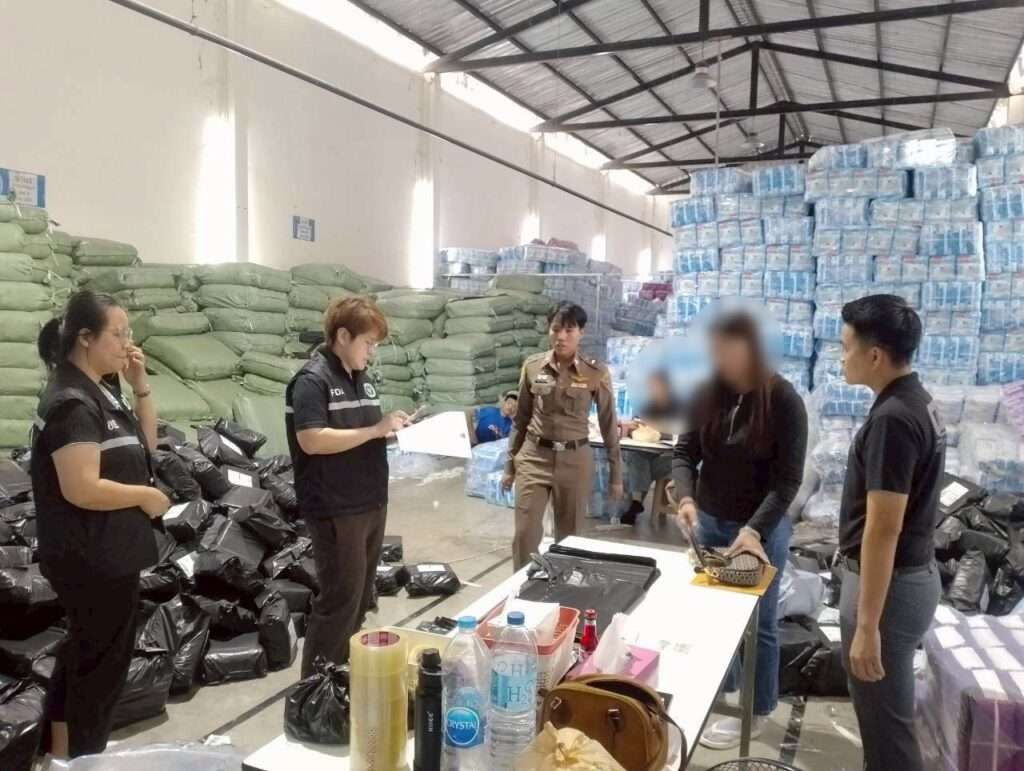 จากการสืบสวนขยายผลทราบว่า ผลิตภัณฑ์บางรายการมีการขออนุญาตจดแจ้งกับสำนักงานคณะกรรมการอาหารและยาจริง โดยมีการขออนุญาตเพียง 1 เลขจดแจ้ง แต่นำเลขไปใช้กับผลิตภัณฑ์รายการอื่นด้วยเพิ่มความน่าเชื่อถือ เครือข่ายดังกล่าวลักลอบนำสินค้าเข้ามาจากประเทศจีน โดยสั่งผลิตและนำเข้าสินค้าแล้วนำมาเก็บไว้ยังโกดังเพื่อรอคำสั่งซื้อจากลูกค้าในประเทศไทย แล้วแพ็คส่งให้ลูกค้าตามออเดอร์ จึงลงพื้นที่ตรวจสอบจนทราบถึงสถานที่จัดเก็บและจุดกระจายสินค้า ก่อนนำหมายศาลเข้าตรวจค้นสถานที่ที่เกี่ยวข้องในการกระทำความผิด จำนวน 2 แห่ง ประกอบด้วยสถานที่จัดเก็บสินค้า ในพื้นที่แขวงท่าข้าม เขตบางขุนเทียน กรุงเทพมหานคร โดยมี น.ส.อริยา (สงวนนามสกุล) อายุ 32 ปี แสดงตัวเป็นผู้ดูแลและตรวจค้นสถานที่จัดเก็บและไลฟ์สด ภายในโกดังแห่งหนึ่งในพื้นที่ ต.บางน้ำจืด อ.เมือง จ.สมุทรสาคร โดยมี นายฑิตาธร (สงวนนามสกุล) อายุ 25 ปี แสดงตัวเป็นผู้ดูแล ตรวจยึดของกลางจำนวน 13 รายการ เป็นผ้าอนามัย จำนวน 11 รายการ รวม 1,288,804 ชิ้น วัตถุอันตราย จำนวน 2 รายการ รวม 572 ชิ้น รวมมูลค่ากว่า 20,200,000 บาท