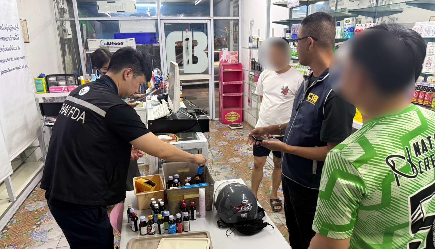 CIB–อย.บุก ตรวจค้นร้านขายยา 7 แห่ง ลักลอบจำหน่าย ยาแก้ไอปลอมหลังพบพิรุธสั่งมากผิดปกติ