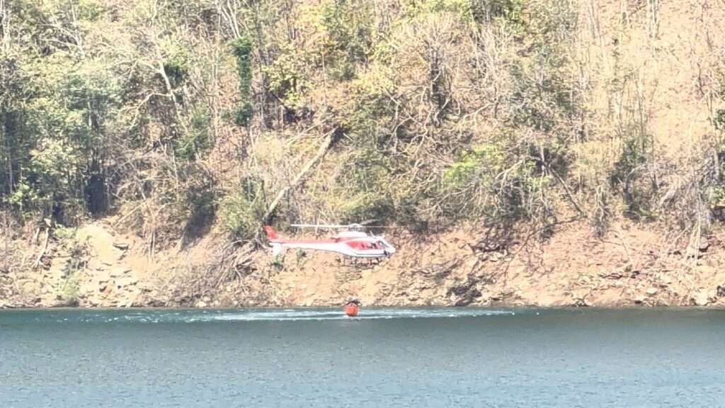 พร้อมกันนี้ ศูนย์เทคโนโลยีดิจิทัลและอากาศยาน สำนักงานปลัดกระทรวงทรัพยากรธรรมชาติและสิ่งแวดล้อม ได้ให้เฮลิคอปเตอร์หมายเลข ทส 1110 ขึ้นบินสำรวจและทิ้งน้ำสนับสนุนการควบคุมไฟ 5 เที่ยวบิน (ปริมาณน้ำ 2,500 ลิตร) โดยสามารถดับไฟได้บางส่วนและช่วยลดความรุนแรงของเปลวไฟเพื่อเปิดทางให้กำลังภาคพื้นเข้าดำเนินการได้อย่างปลอดภัย ซึ่งเจ้าหน้าที่ภาคพื้นยังคงเข้าควบคุมไฟอย่างต่อเนื่อง