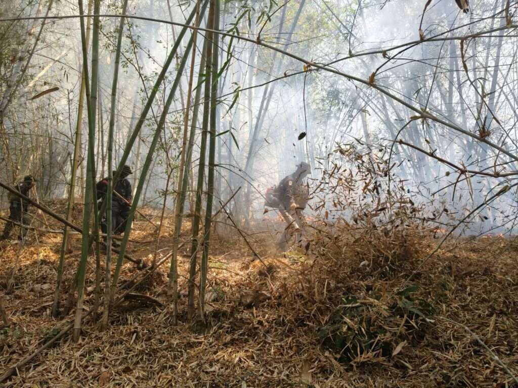 ทั้งนี้ คณะเจ้าหน้าที่ภาคพื้นได้ดำเนินการควบคุมและดับไฟป่า โดยสามารถควบคุมสถานการณ์ไฟป่าในจุดที่ 2. และจุดที่ 3. ไว้ได้ สำหรับจุดที่ 1. สามารถดับไฟได้บางส่วน ซึ่งบางส่วนไม่สามารถเข้าถึงไฟได้ เนื่องจากไฟได้ลุกลามขึ้นสู่ยอดเขาสูงชัน ไม่สามารถดับได้โดยตรง เจ้าหน้าที่จึงได้ทำแนวกันไฟบล็อกเพื่อไม่ให้ลุกลามและให้อยู่ในแนวควบคุม ทั้งนี้ได้จัดให้เจ้าหน้าที่เฝ้าระวังพร้อมวางแผนการเข้าปฏิบัติและติดตามสถานการณ์อย่างต่อเนื่อง