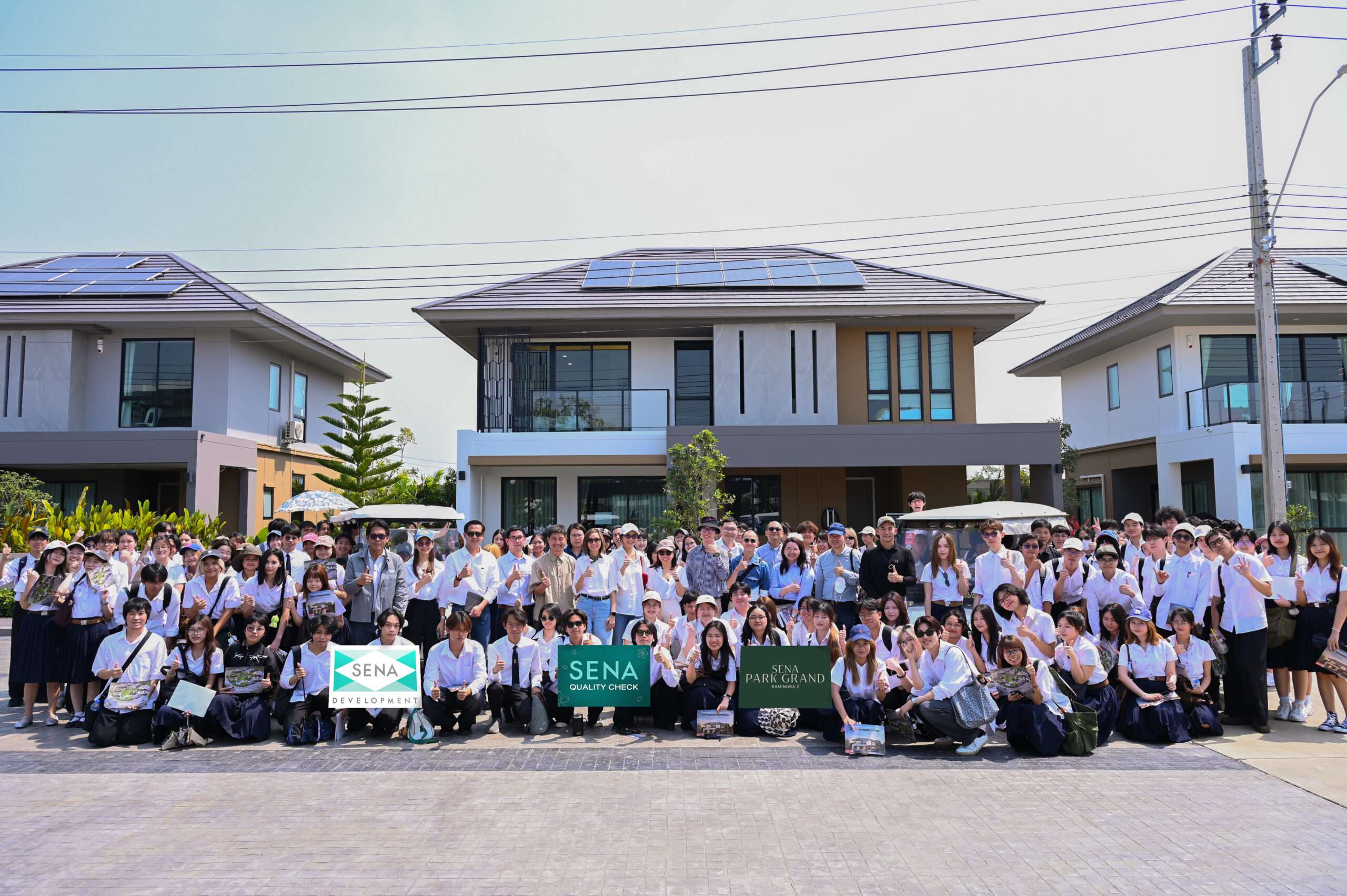 กรุงเทพฯ, วันที่ 20 ก.พ. – นางสาวศรีวรัตน์ ธัญลักษณ์ภาคย์ ผู้อำนวยการอาวุโส สายงานพัฒนาโครงการ และผลิตภัณฑ์ พร้อมด้วยนายพงษ์พันธ์ โตเนียม ผู้อำนวยการ สำนักบริหารโครงการแนวราบ บริษัท เสนาดีเวลลอปเม้นท์ จำกัด (มหาชน) เปิดโครงการ “เสนา พาร์ค แกรนด์ รามอินทรา 2 (SENA PARK GRAND RAMINDRA 2)” ให้การต้อนรับ ผศ.ดร.เทิดศักดิ์ เตชะกิจขจร คณะอาจารย์ และนิสิตชั้นปีที่ 1 จากคณะสถาปัตยกรรมศาสตร์ จุฬาลงกรณ์มหาวิทยาลัย รายวิชาวัสดุและการก่อสร้างงานสถาปัตยกรรม กว่า 150 คน เข้าศึกษาดูงานภาคสนาม เพื่อศึกษาและทำความเข้าใจกระบวนการก่อสร้างในแต่ละระยะจากไซต์งานจริง ตั้งแต่งานโครงสร้าง ระบบงานวิศวกรรม ไปจนถึงรายละเอียดงานสถาปัตยกรรม อันเป็นพื้นฐานสำคัญในการต่อยอดสู่การออกแบบและเขียนแบบก่อสร้างอย่างถูกต้องและสอดคล้องกับการปฏิบัติจริง ซึ่งสะท้อน Core Value ขององค์กรในด้าน Knowledge Sharing ที่ให้ความสำคัญกับการแบ่งปันองค์ความรู้จากภาคธุรกิจสู่สถาบันการศึกษา เพื่อร่วมพัฒนาบุคลากรรุ่นใหม่สู่ภาควิชาชีพด้านสถาปัตยกรรมและอสังหาริมทรัพย์อย่างยั่งยืน
