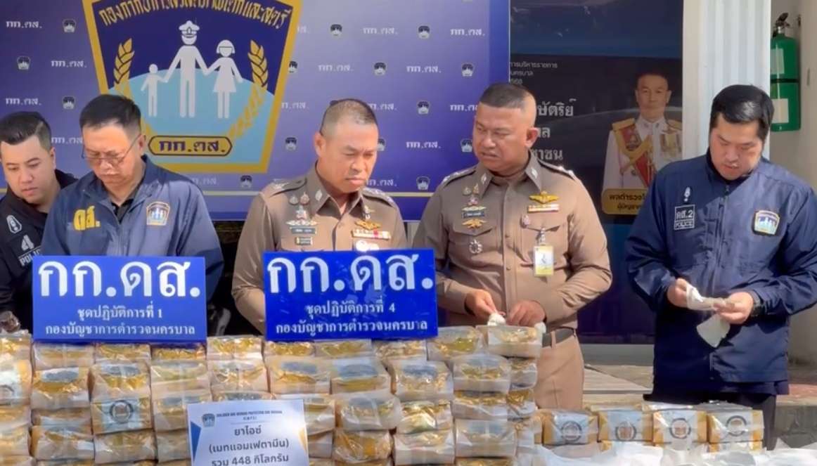 ได้ทำการจับกุมตัว นายสมชาย(สงวนนามสกุล) อายุ 55 ปี และ นายปรีดา(สงวนนามสกุล)อายุ 54 ปีได้ร่วมกันตรวจยึดของกลาง ยาเสพติดให้โทษประเภท 1 (เมทแอมเฟตามีนหรือยาไอซ์) จำนวน 23 กระสอบ จำนวน 448 ห่อ น้ำหนักประมาณ 448 กิโลกรัม โดยกล่าวหาว่า “ร่วมกันจำหน่าย โดยการมีไว้เพื่อจำหน่าย ซึ่งยาเสพติดให้โทษประเภท 1 (ยาไอซ์หรือเมทแอมเฟตามีน) โดยไม่ได้รับอนุญาต อันเป็นการกระทำเพื่อการค้าและก่อให้เกิดการแพร่กระจายในกลุ่มประชาชน และเป็นการทำให้เกิดผลกระทบต่อความมั่นคงของรัฐหรือความปลอดภัยของประชาชนทั่วไป”สถานที่จับกุม บริเวณริมถนนบางแวก คลองขวาง ภาษีเจริญ กรุงเทพมหานคร