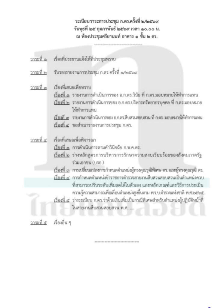 วันที่ 24 ก.พ. 69 ที่ ตร.ผู้สื่อข่าวรายงานว่า นายอนุทิน ชาญวีระกูล นายกรัฐมนตรีในฐานะประธานคณะกรรมการข้าราชการตำรวจหรือก.ตร.นัดประชุม ครั้งที่ 2/2569.ในวันพุธที่ 25 กุมภาพันธ์ 2569 เวลา 10.00 น. ณ ห้องประชุมศรียานนท์ อาคาร 1ชั้น2 ตร. โดยมีระเบียบวาระการประชุม ประกอบด้วย