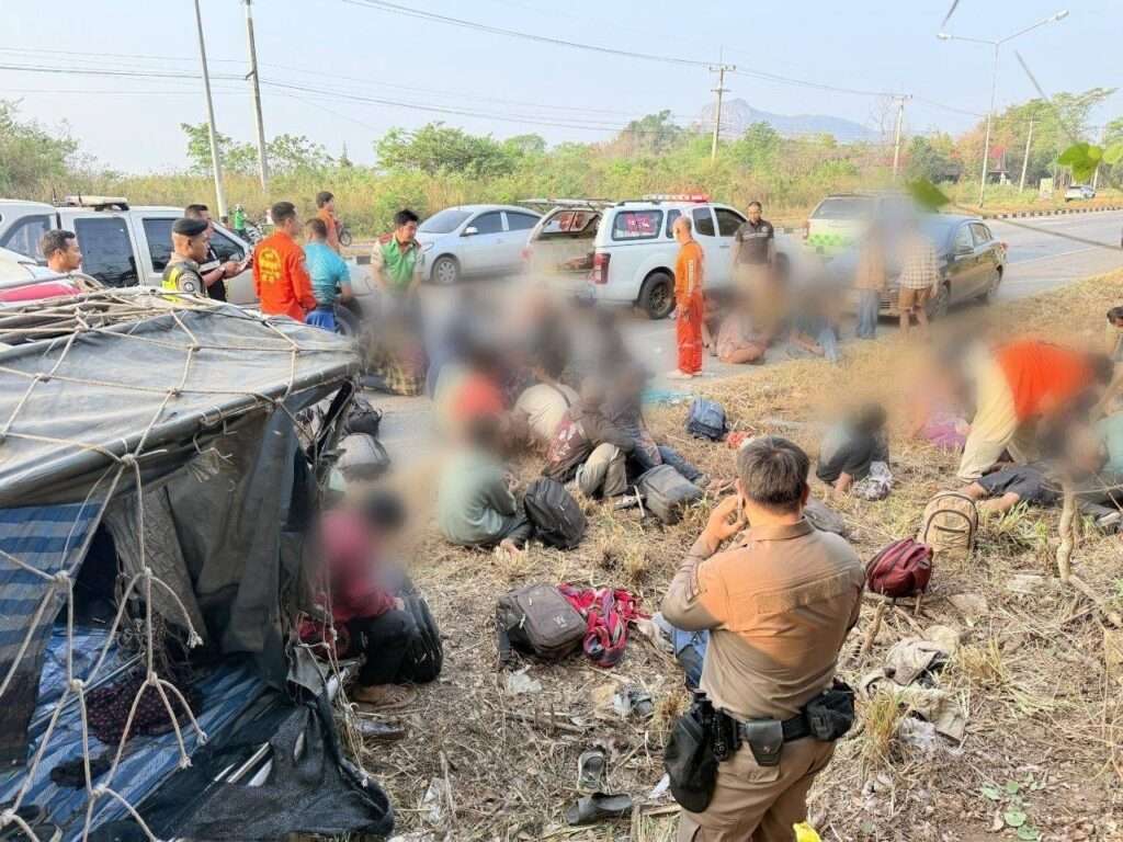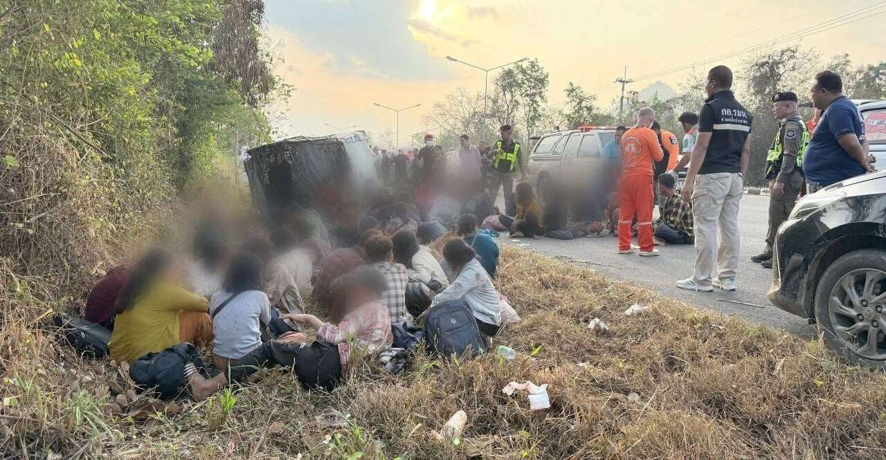 กระบะขนแรงงานเถื่อน เร่งเครื่องหนีสุดระห่ำกว่า 50 กม. ก่อนพลิกคว่ำเทกระจาด แรงงานเมียนมา 44 ชีวิต ทำเจ็บอื้อ 21 ราย สารภาพจะไปทำงานที่มาเลย์ แต่ไม่ถึง
