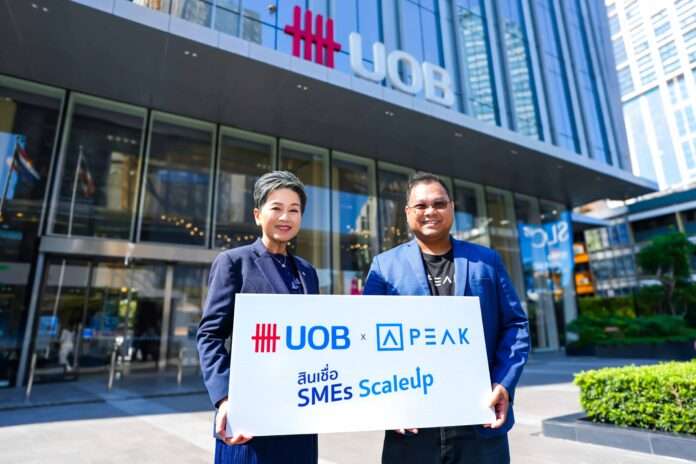 ธนาคารยูโอบี ประเทศไทย ร่วมมือกับ PEAK ผู้นำแพลตฟอร์มบัญชีออนไลน์สำหรับธุรกิจเอสเอ็มอี มอบสินเชื่อวงเงินสูงสุด 1 ล้านบาท โดยไม่ต้องใช้หลักทรัพย์ค้ำประกัน ผ่านแคมเปญ SMEs ScaleUp โดยใช้ข้อมูลบัญชีดิจิทัลที่ผ่านการตรวจสอบแล้ว มาประกอบการพิจารณาสินเชื่อของธนาคาร