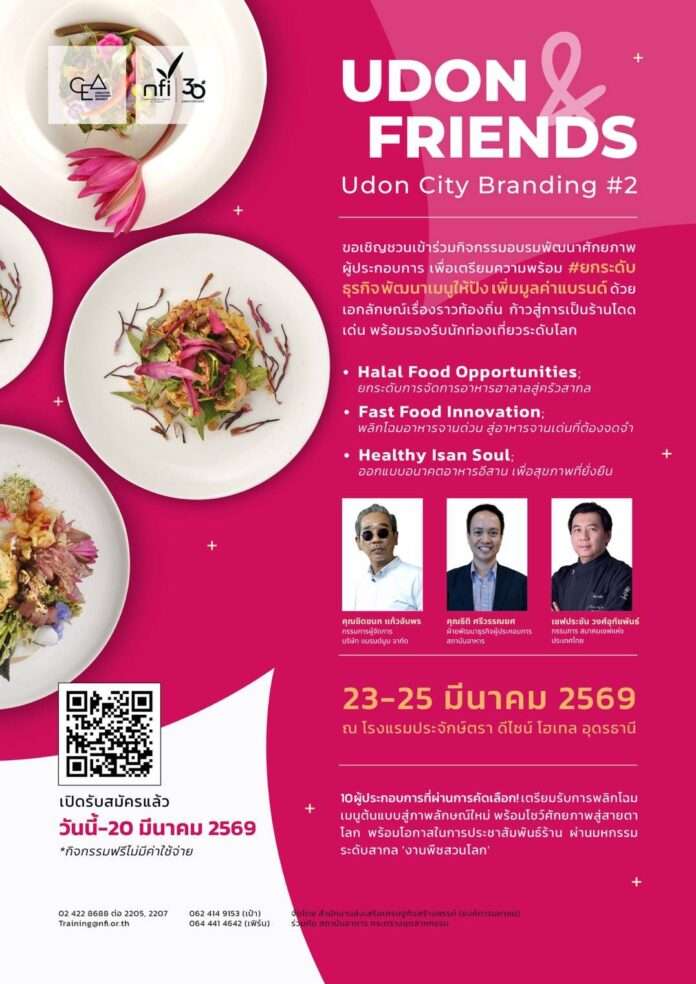โอกาสทองของผู้ประกอบการร้านอาหารอุดรธานีและจังหวัดใกล้เคียง เปิดเวทีอบรมอัดแน่นความรู้ด้านแบรนด์และพัฒนาธุรกิจ พร้อมสิทธิประโยชน์จัดเต็ม ใบประกาศนียบัตร–เวิร์กช็อปพิเศษกับเชฟระดับประเทศ และโอกาสประชาสัมพันธ์ร้านผ่าน E-CATALOG สู่มหกรรมระดับสากล “งานพืชสวนโลก 2569”