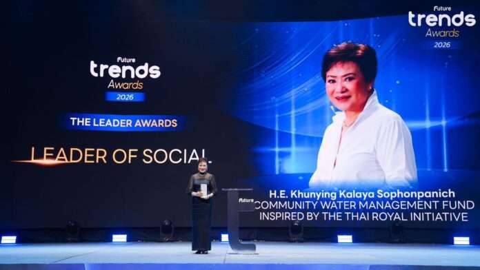 กรุงเทพฯ, วันที่ 27 ก.พ. – คุณหญิงกัลยา โสภณพนิช ประธานพรรคไทยก้าวใหม่ ได้รับรางวัล Leader of Social จากงาน Future Trends Awards 2026 ที่จัดขึ้นเพื่อยกย่องบทบาทผู้นำเทรนด์อนาคตด้านสังคม และการสร้างการเปลี่ยนแปลงอย่างยั่งยืนให้กับประเทศ จากผลงานการสร้างระบบบริหารจัดการน้ำที่ยั่งยืน