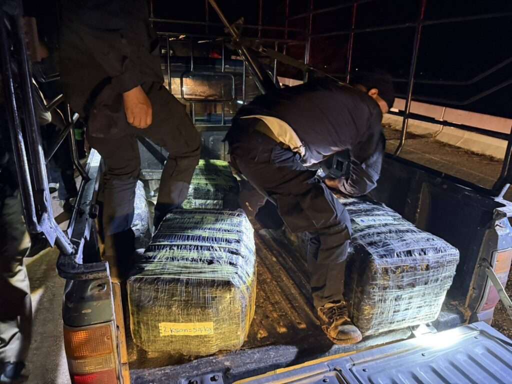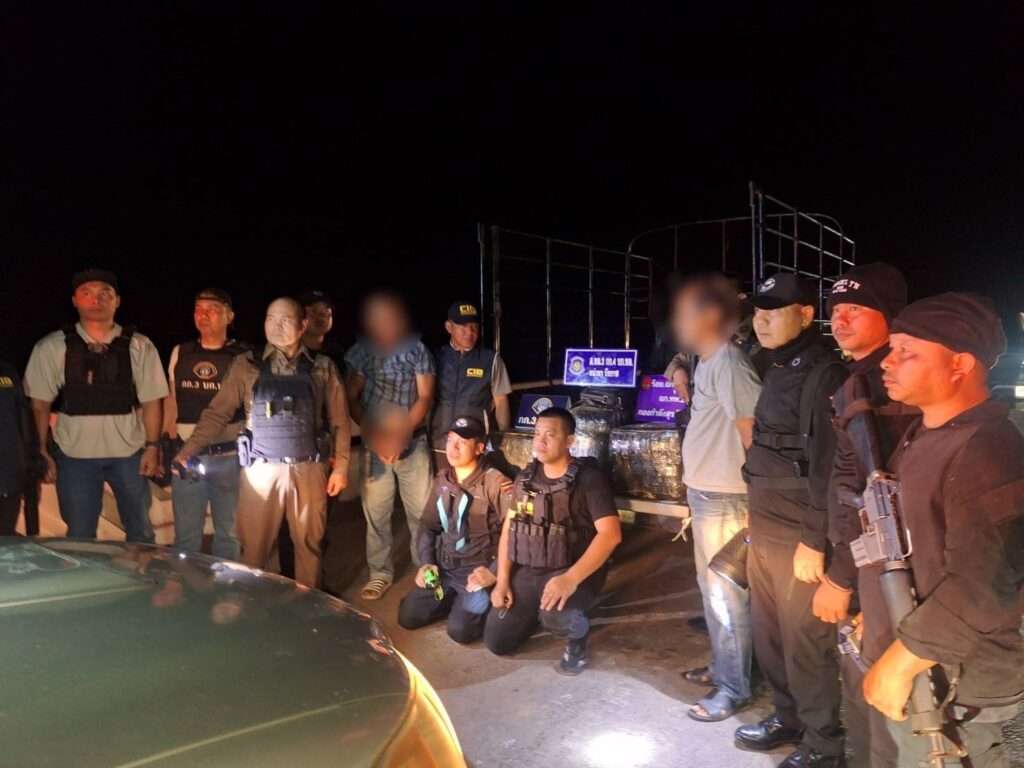 ต่อมา พบชาย 2 คน แบกห่อพัสดุขึ้นรถกระบะและขับออกจากพื้นที่ เจ้าหน้าที่จึงประสานชุดดักซุ่มระหว่างทางให้เตรียมสกัดจับ เมื่อรถต้องสงสัยมาถึงถนนสายบึงกาฬ–บุ่งคล้า เจ้าหน้าที่แสดงตัวขอให้หยุดรถ แต่คนขับกลับเร่งเครื่องหลบหนี เจ้าหน้าที่จึงไล่ติดตามอย่างกระชั้นชิด ก่อนตะครุบจับกุมไว้ได้ในที่สุด