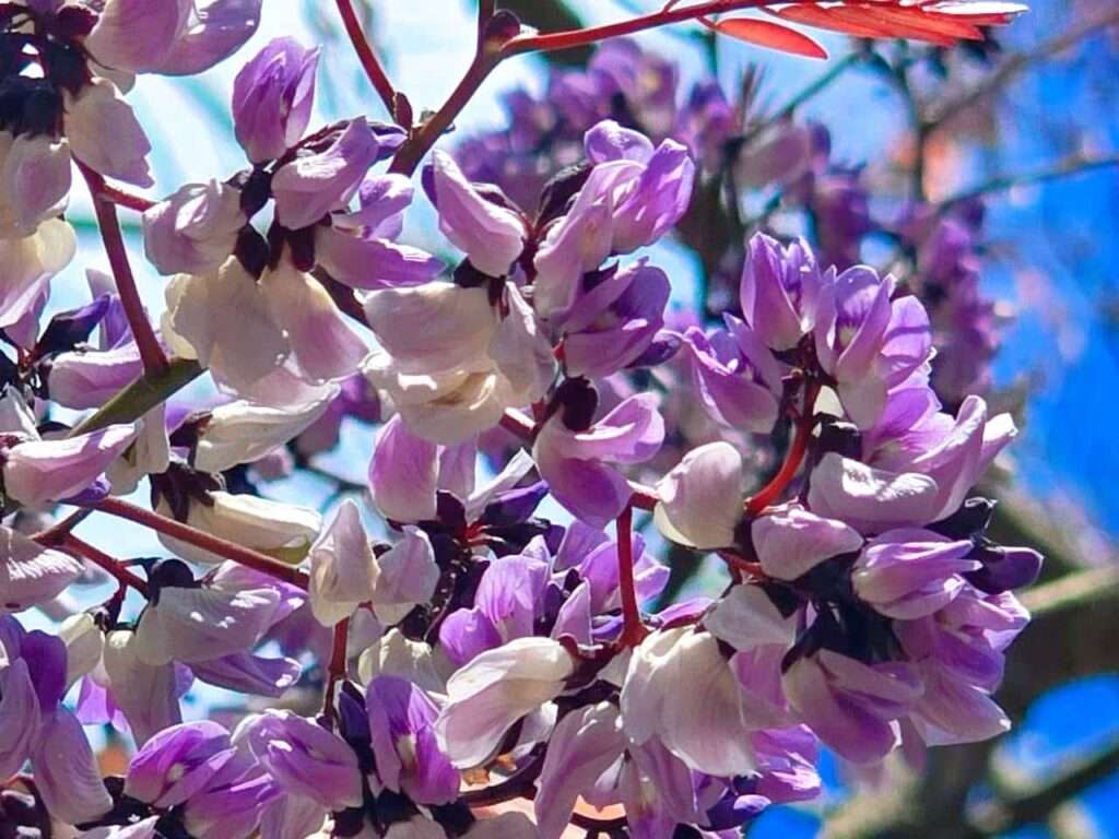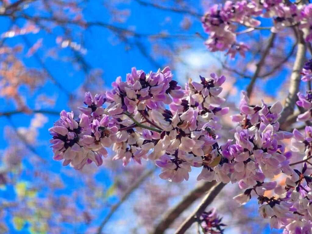 ดอกและผล…จังหวะแห่งฤดูกาล เมื่อถึงคราวผลิใบใหม่ ช่อดอกสีขาวอมม่วงจะผลิบานตามปลายกิ่ง ดอกเล็กละเอียด กลิ่นอ่อนละมุน เกสรเพศผู้แยกเป็นสองกลุ่ม กลุ่มละ 5 อัน