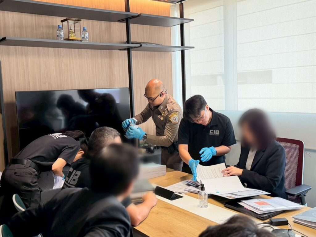 พร้อมกันนี้ ยังได้นำกำลังเข้าตรวจค้น 6 จุด ในพื้นที่จังหวัดต่าง ๆ ในภาคกลาง เพื่อตรวจค้นหาพยานเอกสาร พยานบุคคล นิติบุคคลที่เกี่ยวข้องในคดี ก่อนสามารถตรวจยึดสิ่งของที่จะเป็นพยานหลักฐานในคดีเพิ่มเติม 13 รายการ ประกอบด้วย คอมพิวเตอร์ตั้งโต้ะ 2 เครื่อง สมุดโน้ต 1 เล่ม โน๊ตบุค และ แลปท็อป 2 เครื่อง แม็คบุ๊ค 1 เครื่อง ไอแพด 2 เครื่อง โทรศัพท์ 5 เครื่อง ฮาร์ดดิสก์ 2 ชิ้น และ เอกสารต่าง ๆ เช่น งบการเงิน รายวันจ่ายประจำปี ตราประทับบริษัท รวม 6 รายการ