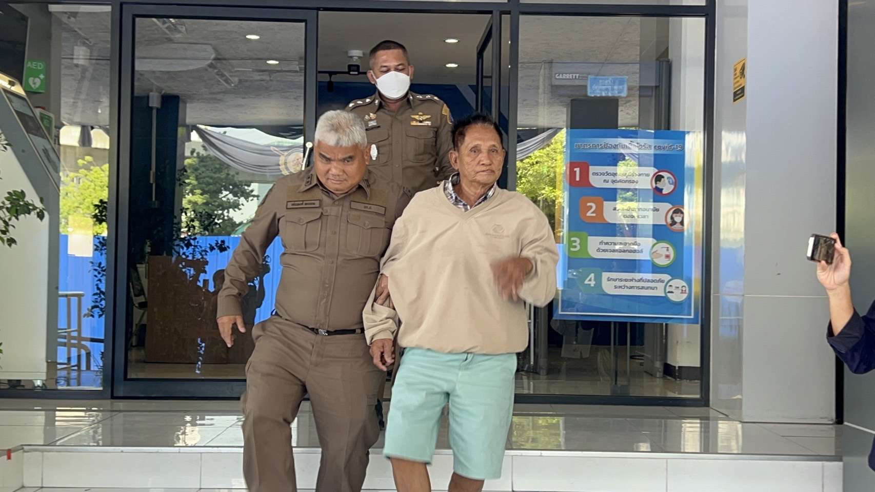 โดยระหว่างที่เจ้าหนาที่กำลังควบคุมตัว นายสนม เดินออกจากตัวอาคารเพื่อพาไปขึ้นรถที่จอดอยู่บริเวณด้านหน้า เผยให้เห็นสภาพร่างกายของนายสนม ที่อิดโรยอย่างเห็นได้ชัด ซึ่งเป็นผลพวงจากความเครียดที่ถูกจับกุมดำเนินคดี นอกจากนี้เจ้าตัวยังเลี่ยงที่จะตอบคำถามจากสื่อมวลชน ที่พยายามสอบถามถึงเรื่องราว ๆ ต่างที่เกิดขึ้น ก่อนจะรีบเดินขึ้นรถไปในทันที